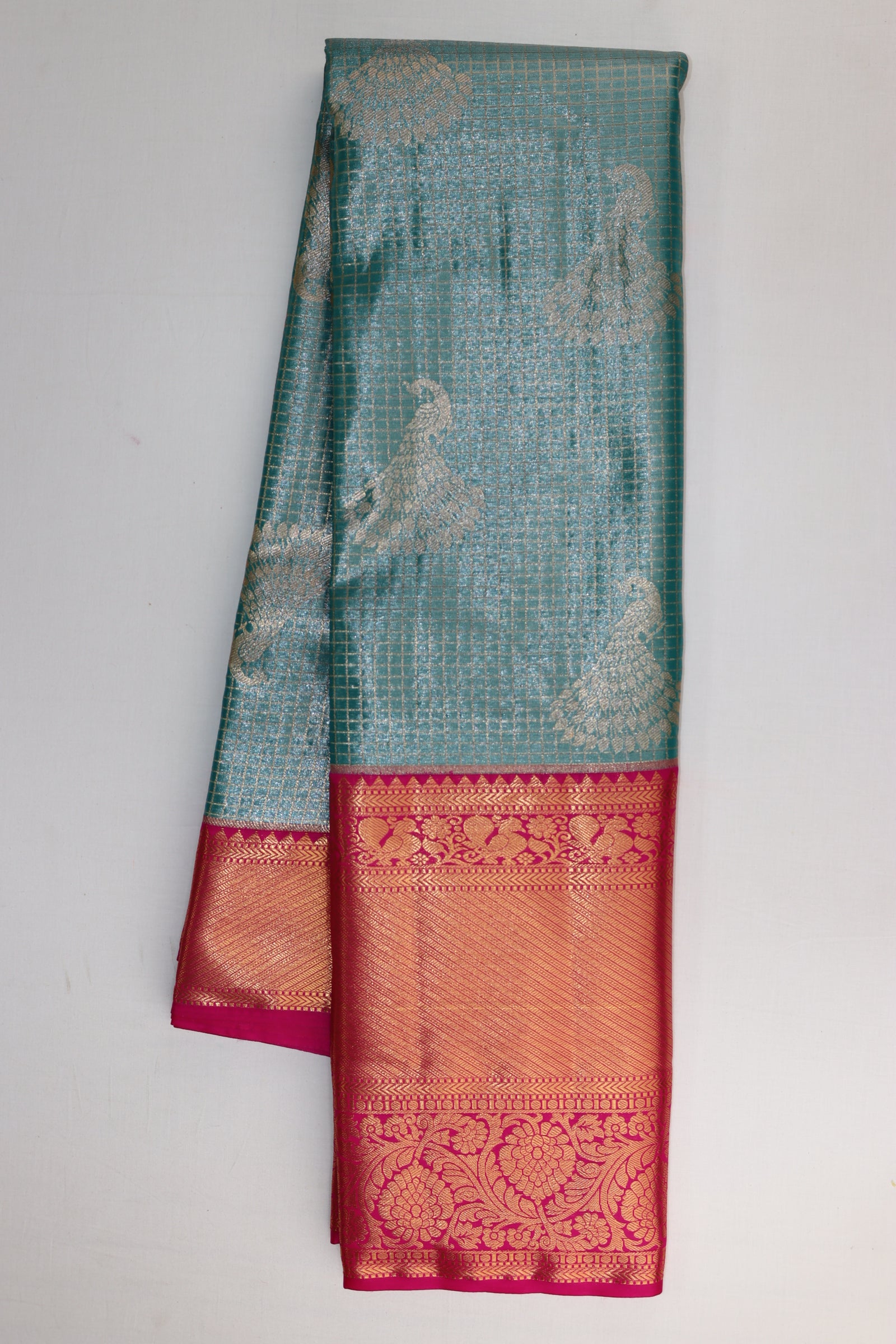 This Amazing Pastel Blue Kanjipuram Saree combines traditional style with modern elegance. Made from high-quality materials, this saree features exquisite craftsmanship and intricate designs. Its rich color and soft, lightweight fabric make it a perfect choice for any occasion. Elevate your wardrobe with this timeless piece and make a statement at your next event.