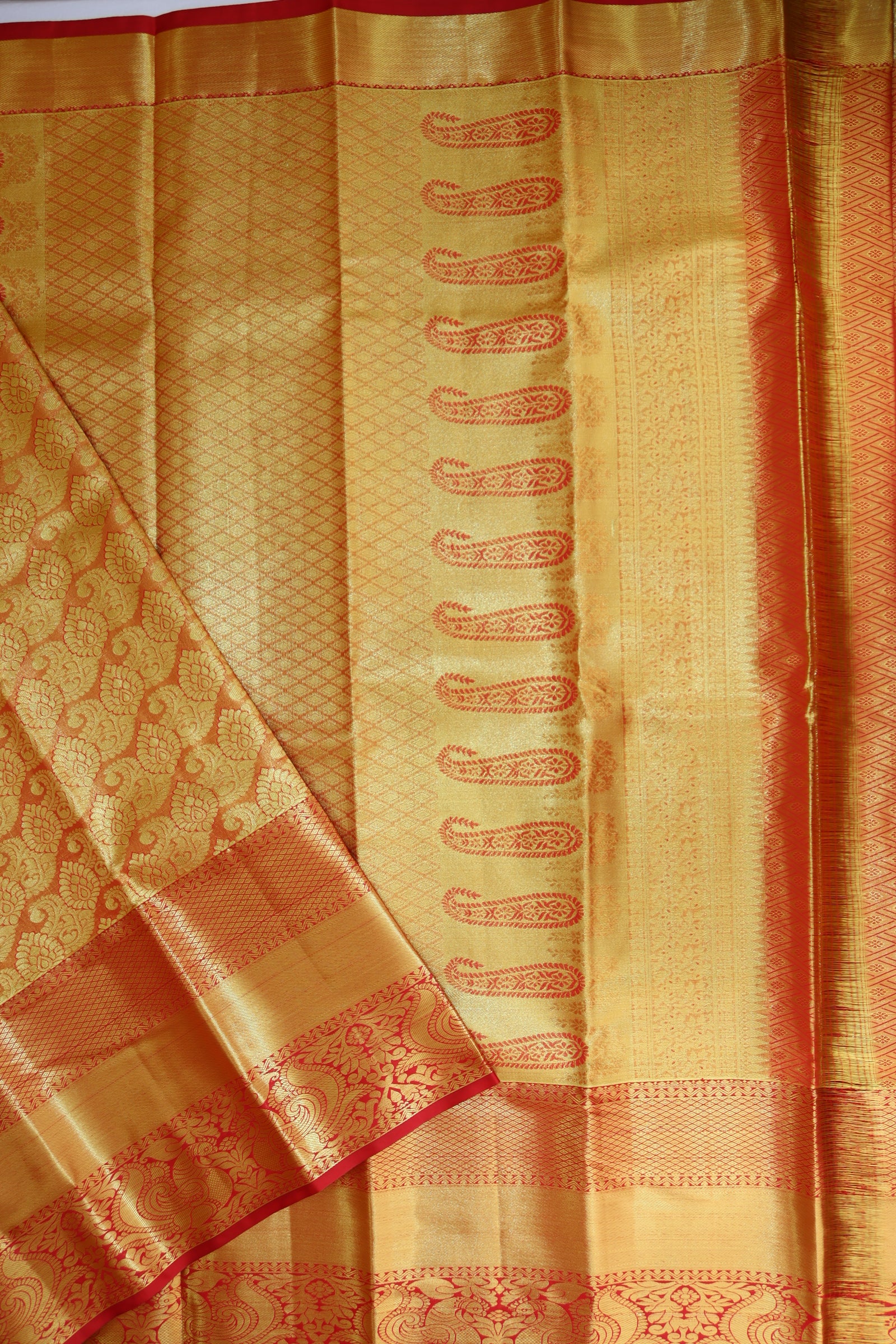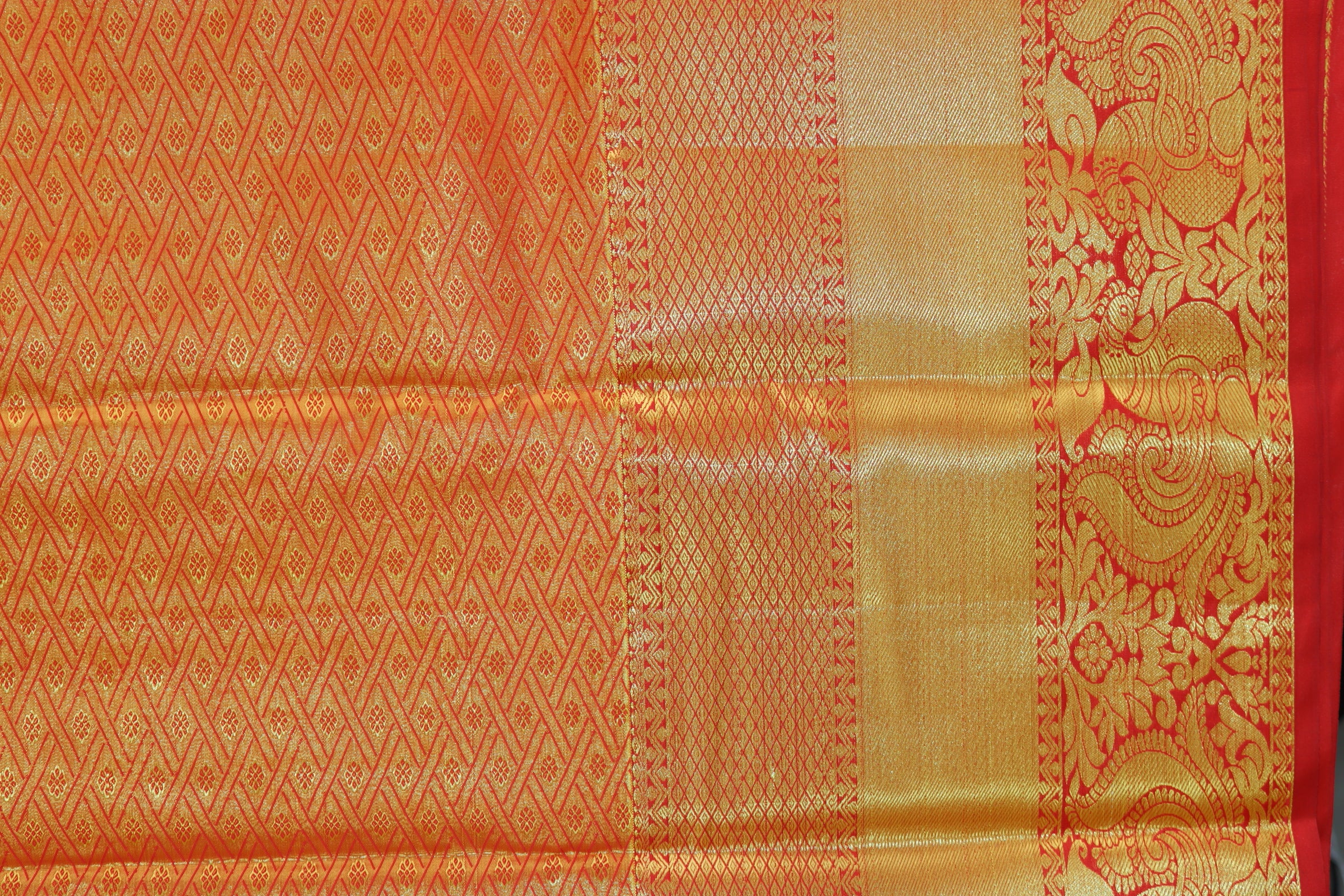 Indulge in luxury and sophistication with our Classic Orange Kanjipuram Saree. Meticulously made with premium quality materials, this saree offers supreme comfort and versatility. Its intricate design and matching blouse make it ideal for any occasion. A must-have for those seeking a polished and sophisticated look.