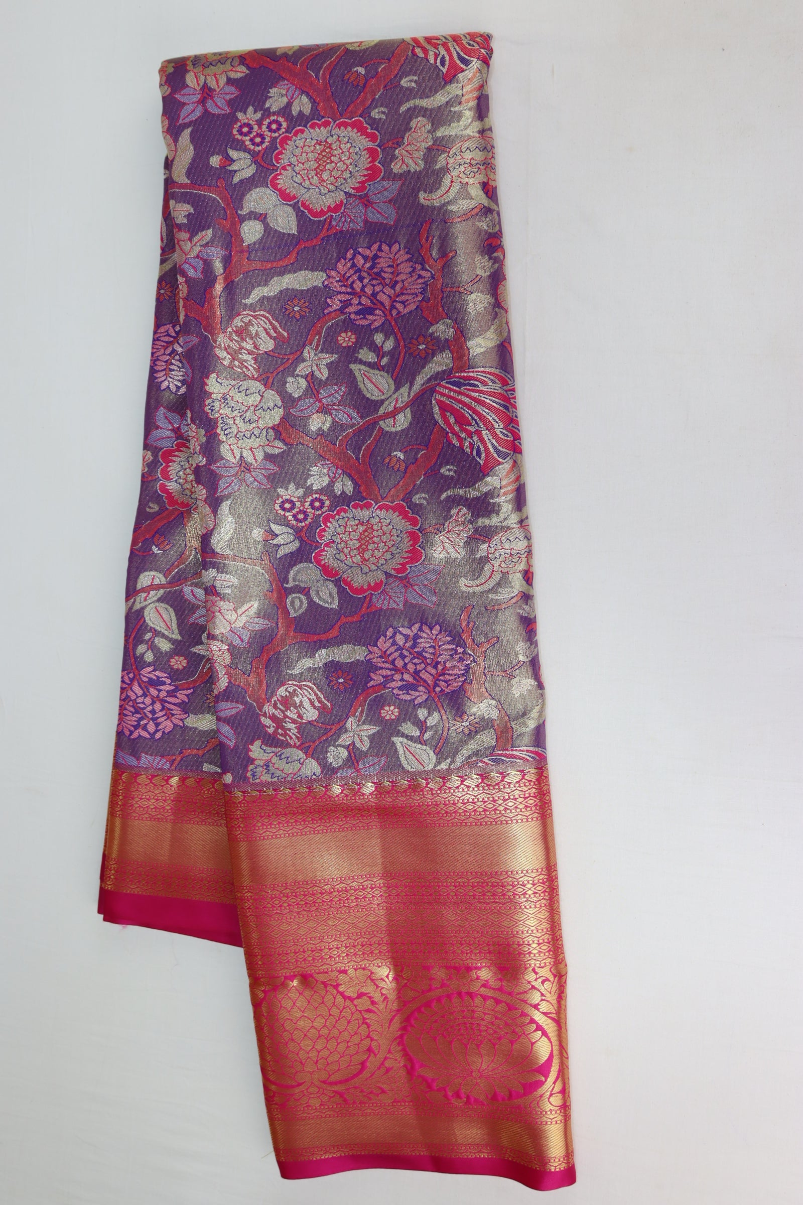 Experience sophistication and minimalism with our Trendy Purple Kanjipuram Saree. Made with high-quality materials and crafted by industry professionals, its lightweight fabric provides versatility and ease. Ideal for any event, it also includes a complementary blouse for a polished ensemble.