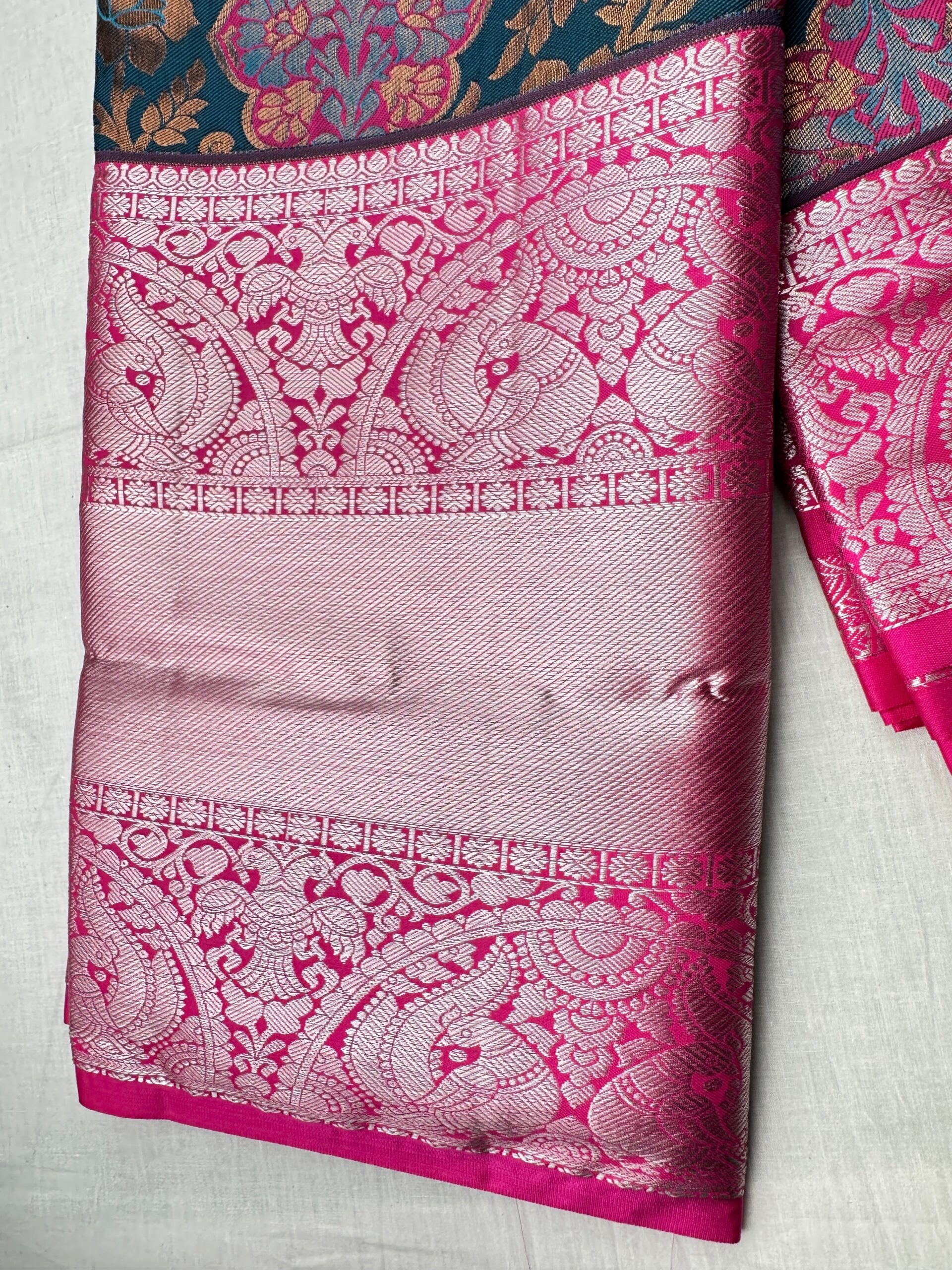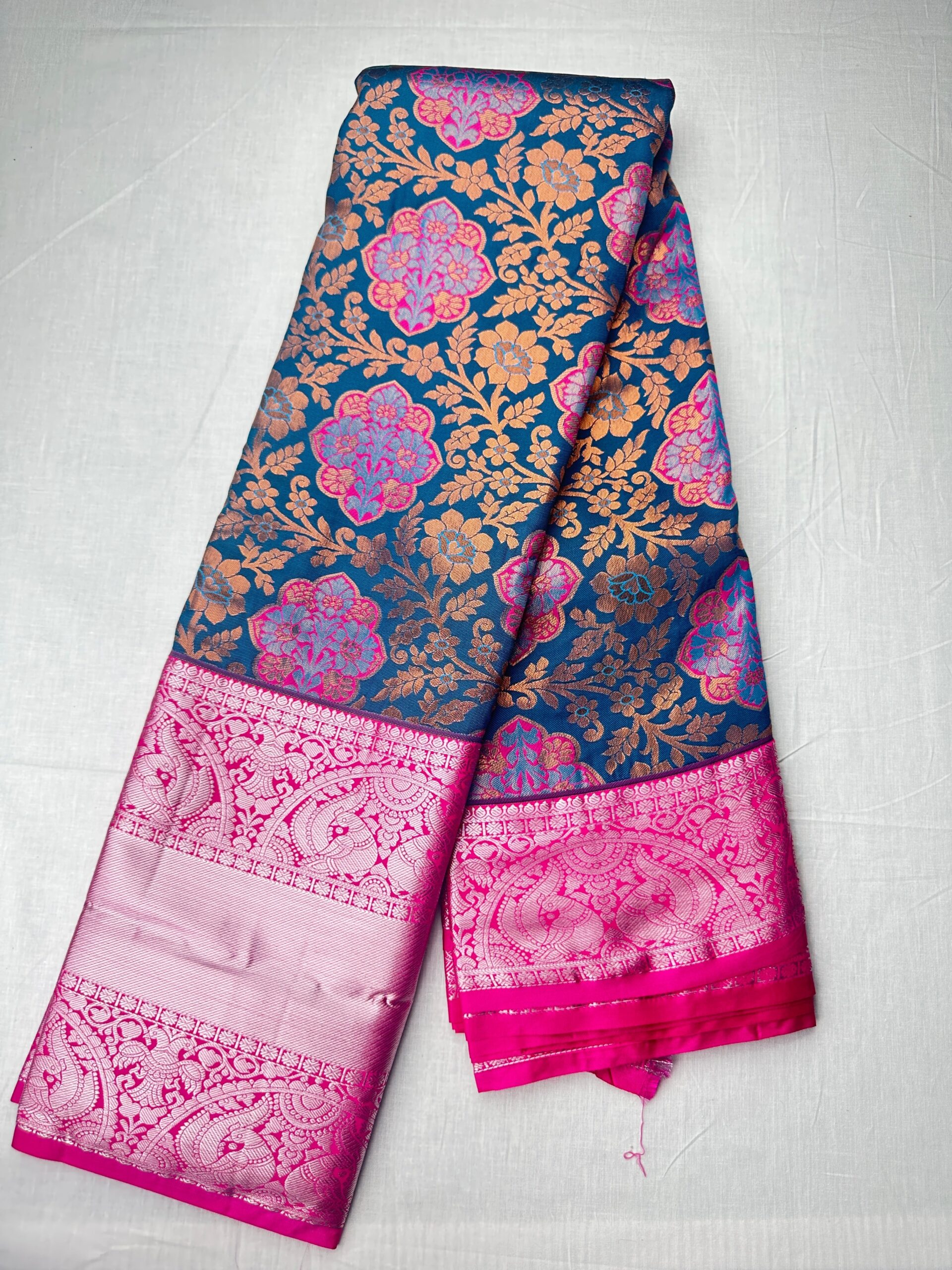 This Classy Navy Blue Kanjipuram Silk Saree is perfect for any formal occasion. Crafted from silk, this saree is both lightweight and breathable, ensuring you stay comfortable throughout the day. Its vibrant blue hue adds an extra touch of luxury and sophistication, making you stand out for all the right reasons.