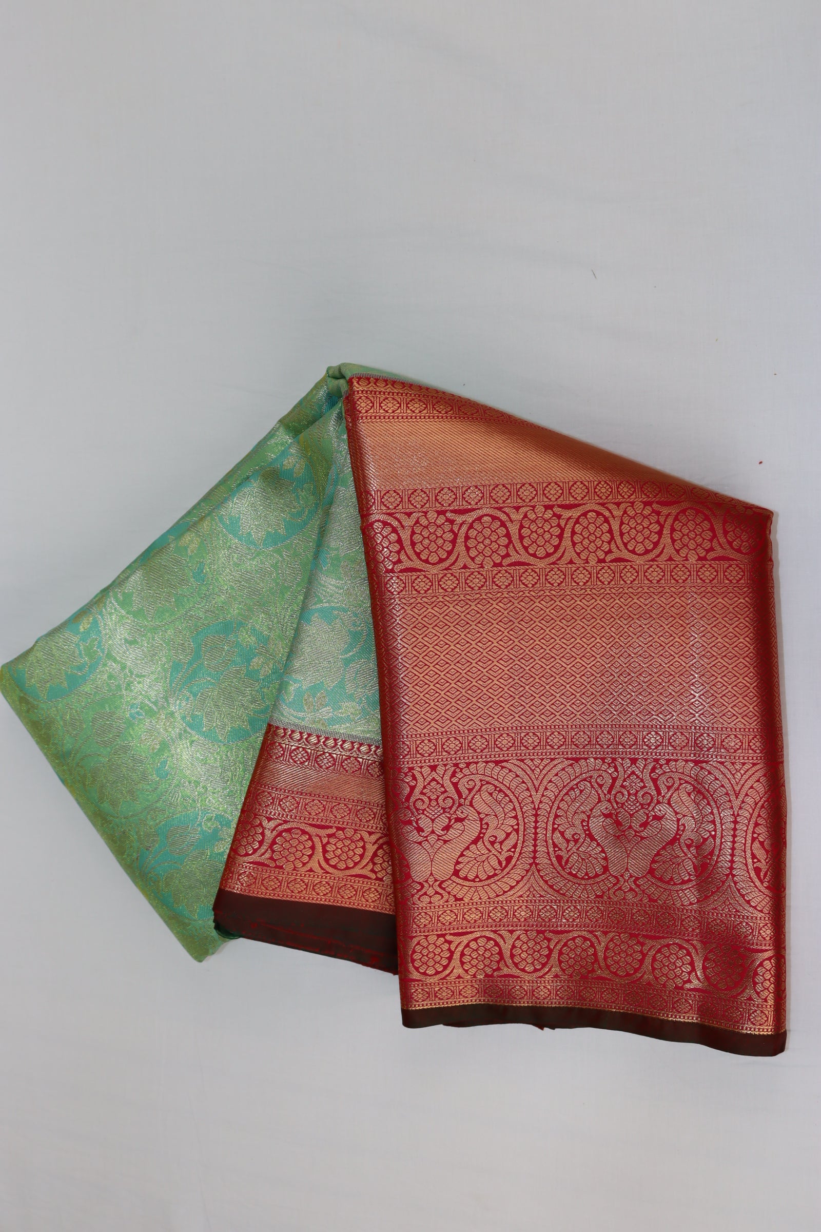 Uncover the beauty of the Colorful Kanjipuram Saree. Meticulously made with high-quality materials and detailed designs, this timeless saree is perfect for any occasion. The lively color exudes happiness, while the blouse adds to its elegant look. Show off your individual style and self-assurance with this stunning saree.