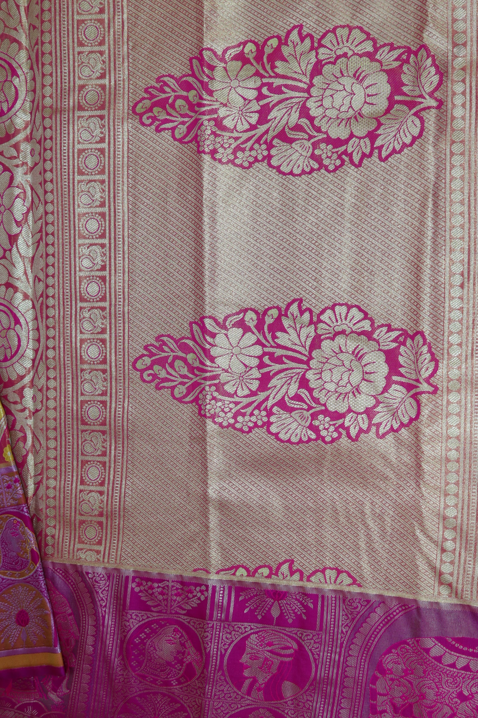 Expertly crafted with high-quality materials and intricate designs, the Classic Multi-Color Kanjipuram Saree is a timeless and versatile choice. Its rich pastel green color adds a vibrant touch to any occasion while the accompanying blouse completes the elegant ensemble. Elevate your flawless look with this exquisite saree.