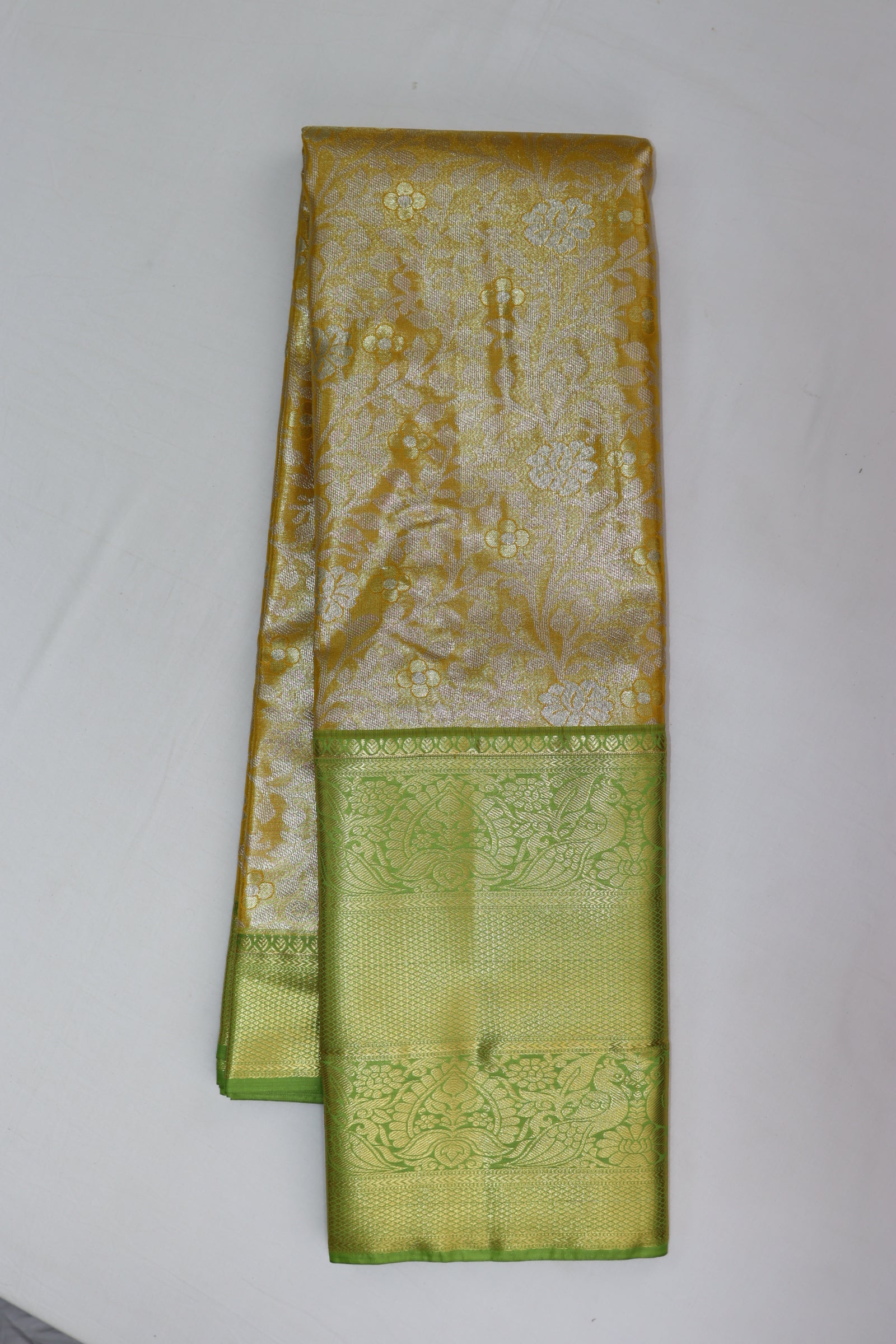 Experience the refined elegance of our Elegant Pastel Yellow Kanjipuram Saree. Skillfully made with premium materials, this saree seamlessly combines luxurious comfort and style. The timeless design and opulent fabric make it a versatile choice for any event, adding a touch of sophistication to your wardrobe. Complete your look with a matching blouse.