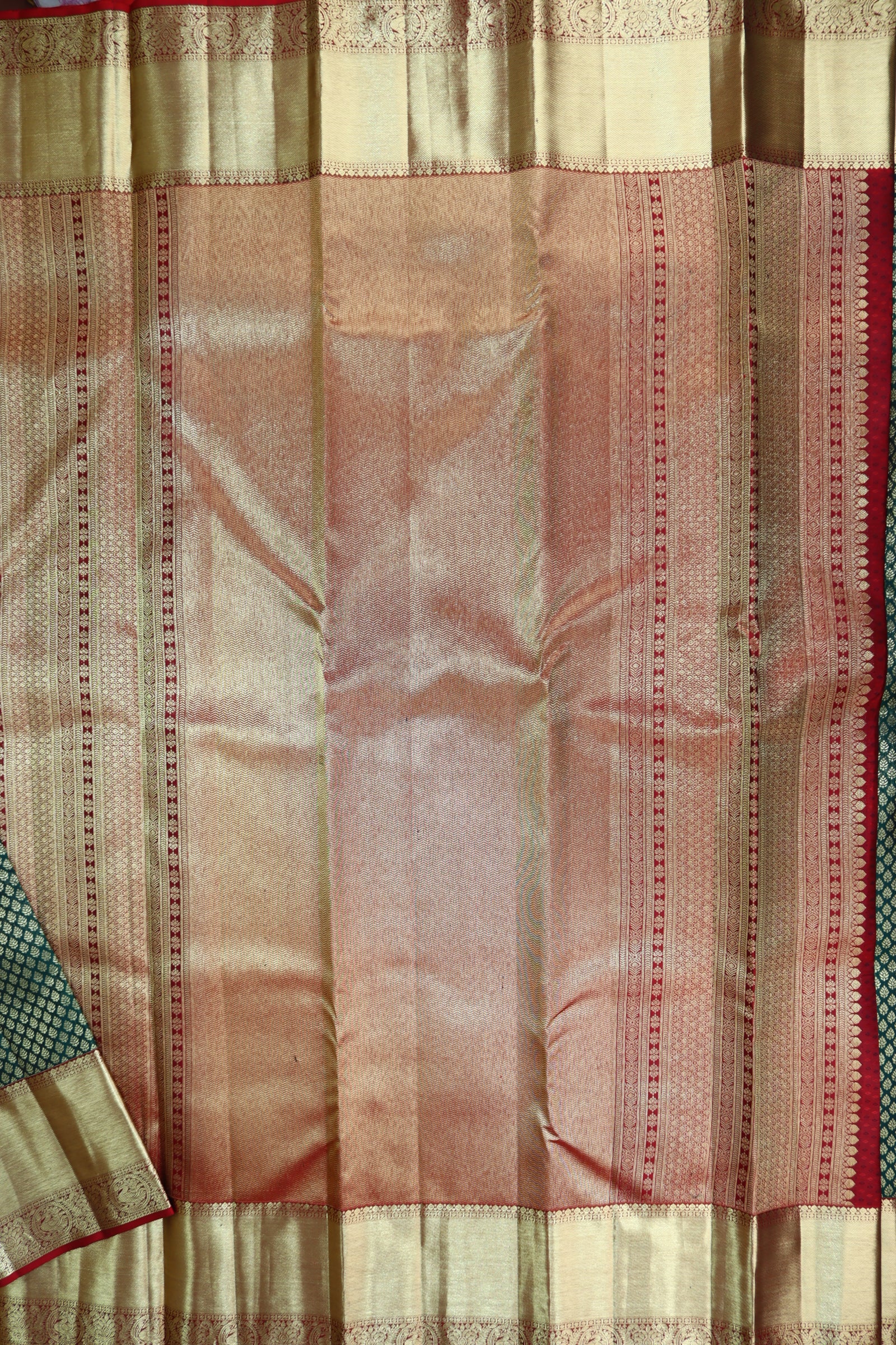 Upgrade your wardrobe with our elegant Enchanting Green Kanjipuram Saree. Crafted with premium materials, this saree effortlessly combines sophistication and comfort. The eye-catching blouse adds a touch of grace to any occasion, making it a versatile and timeless piece. Elevate your fashion game and make a statement with this alluring pastel orange saree.