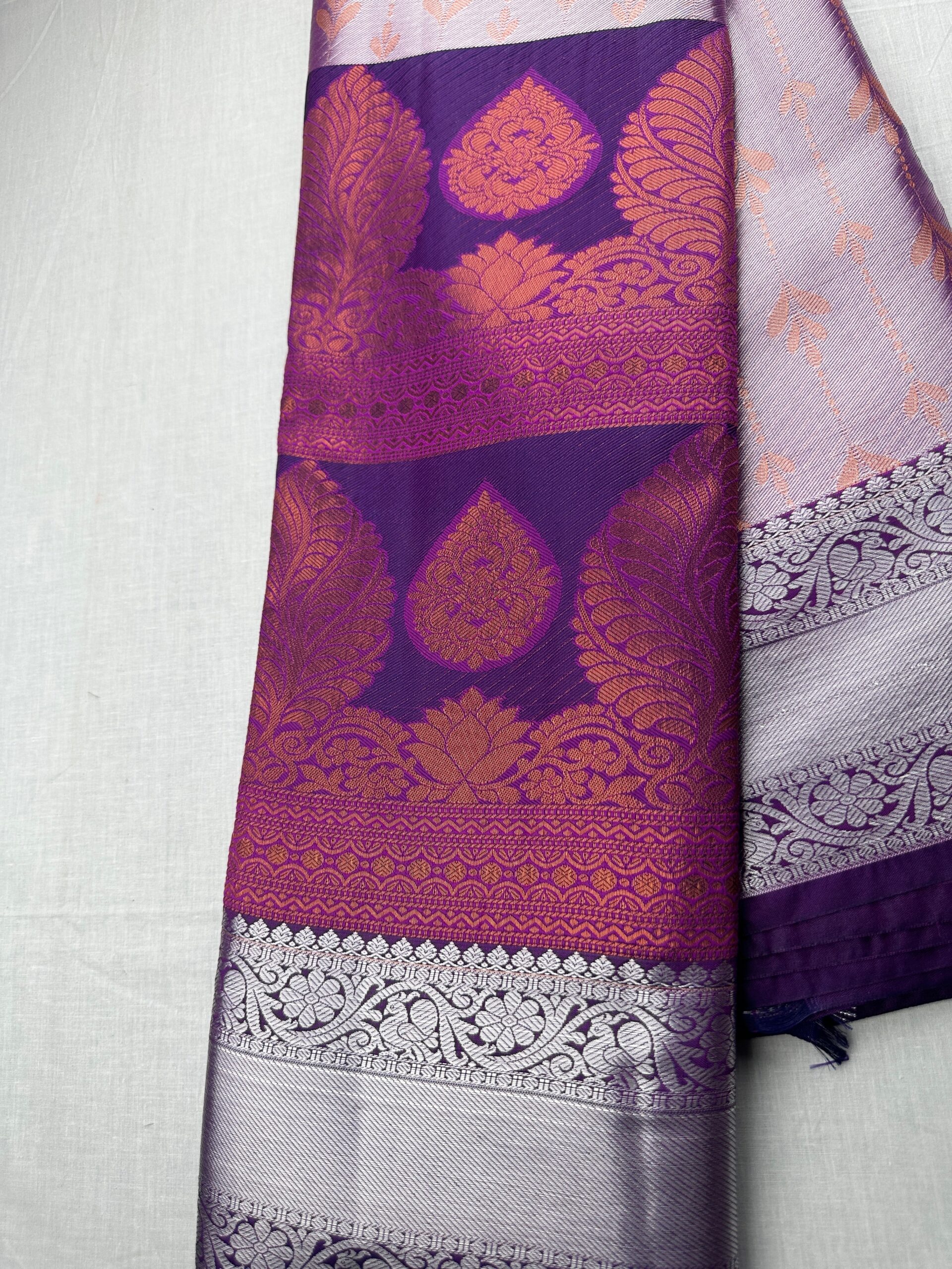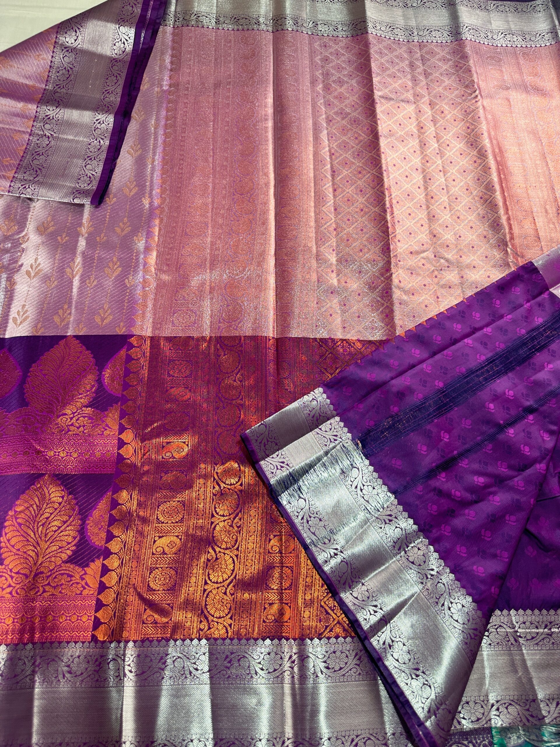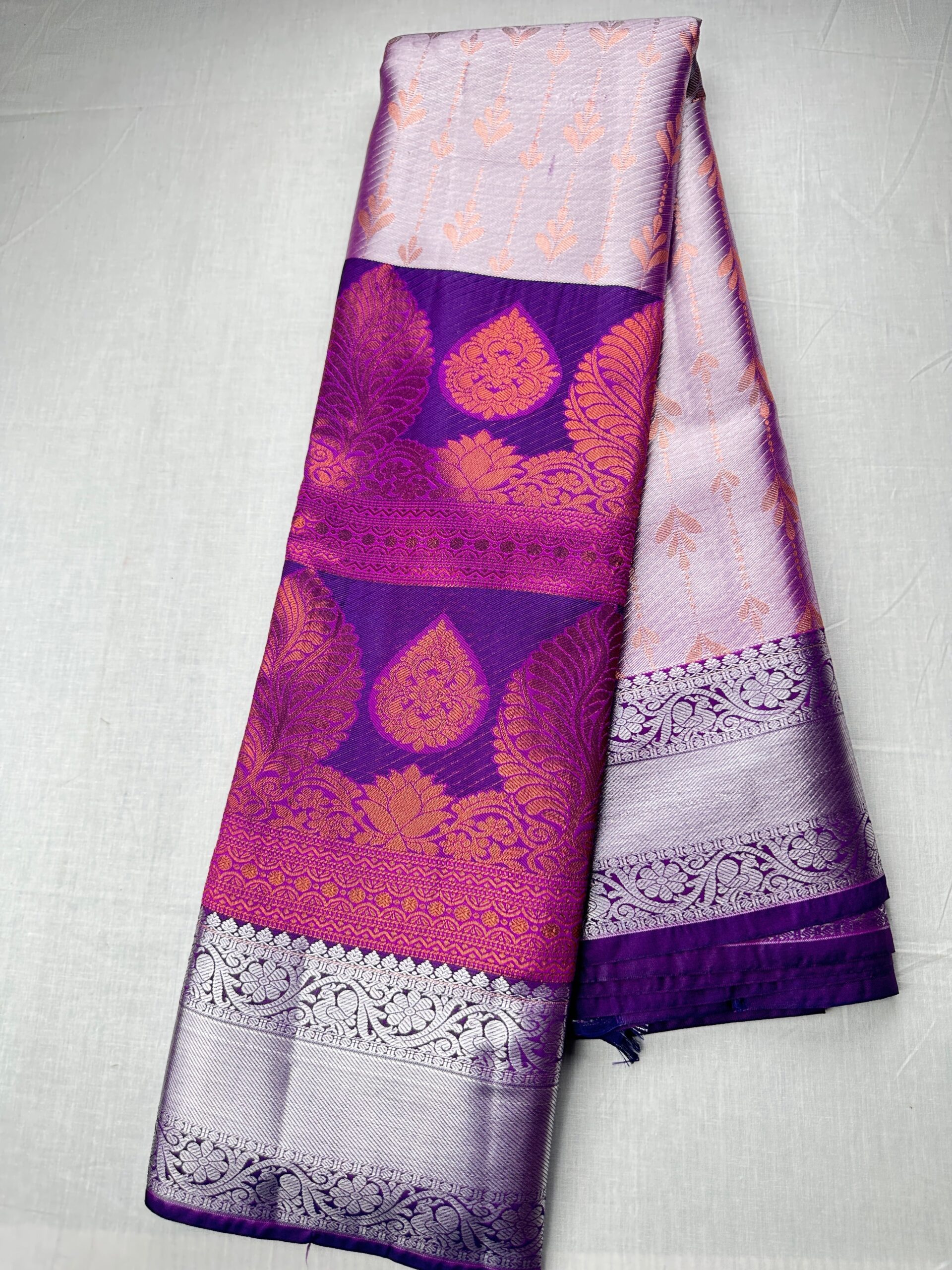 This Exotic Baby Pink Kanjipuram Silk Saree is a perfect choice for any special event. Crafted from fine silk with intricate designs, this saree looks luxurious and sophisticated. Its soft texture and beautiful color will add a touch of elegance to your wardrobe.