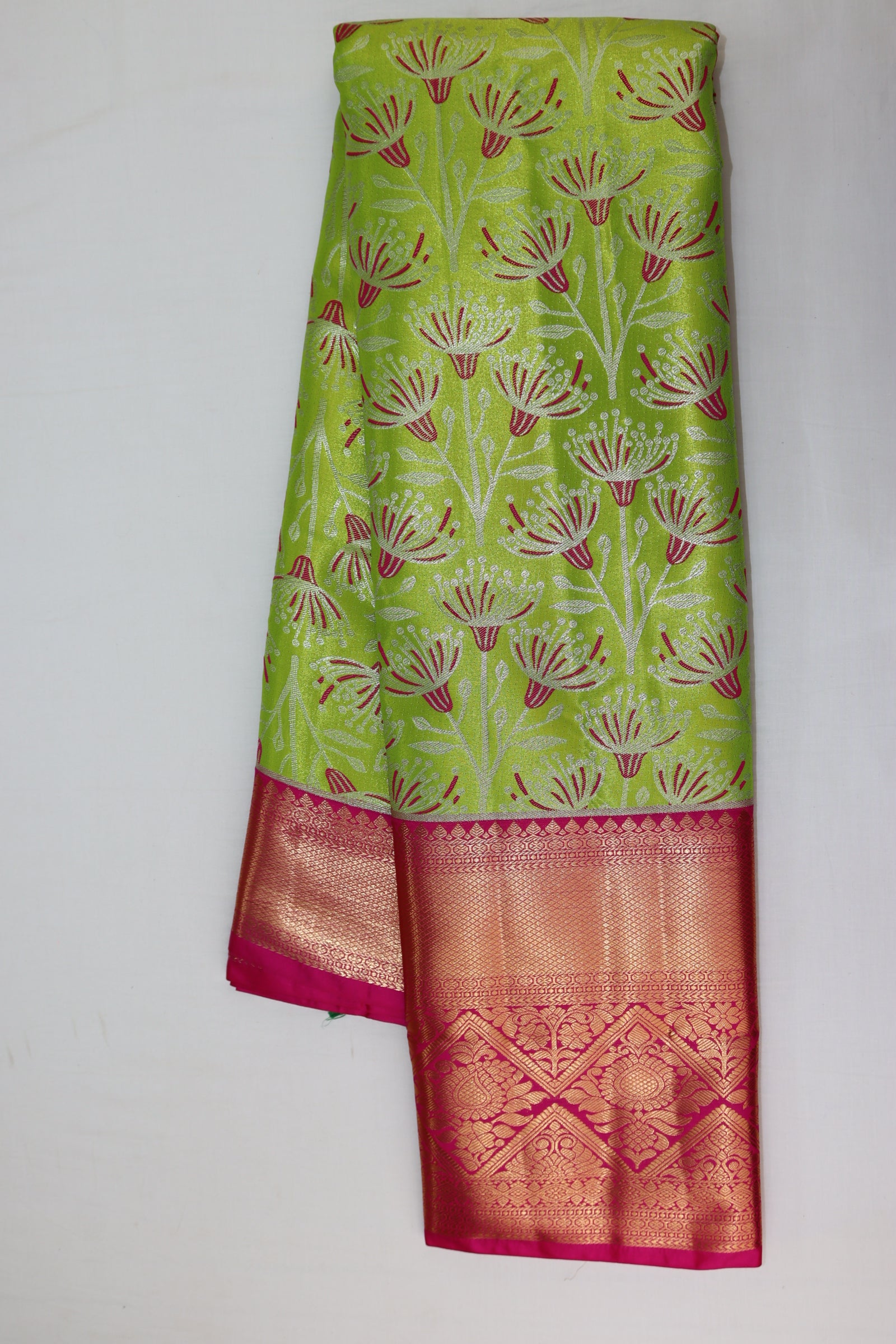 Elevate your elegance with our Graceful Green Kanjipuram Saree. Made from premium silk, this exquisite wine saree embodies grace and comfort. Ideal for any event, its royal pattern and matching blouse provide versatile choices to elevate your fashion.