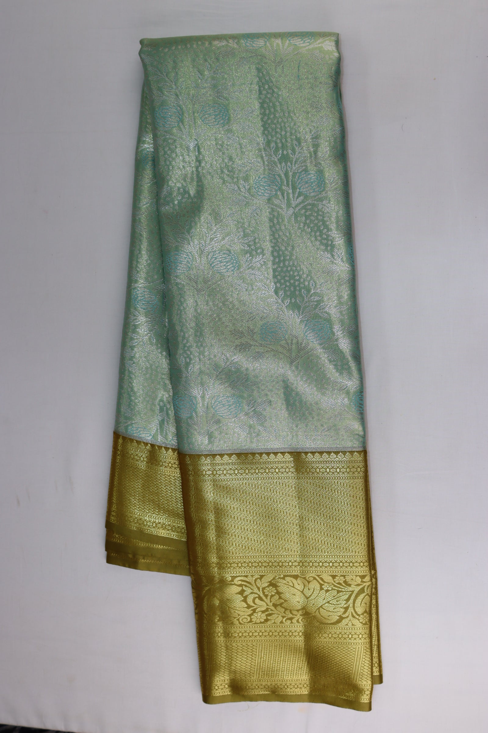 Experience elegance and comfort with our Graceful Pastel Green Kanjipuram Saree. Made with premium materials, its lightweight fabric makes it perfect for any occasion. With an effortless drape and a matching blouse, elevate your style with this timeless and versatile addition to your wardrobe.