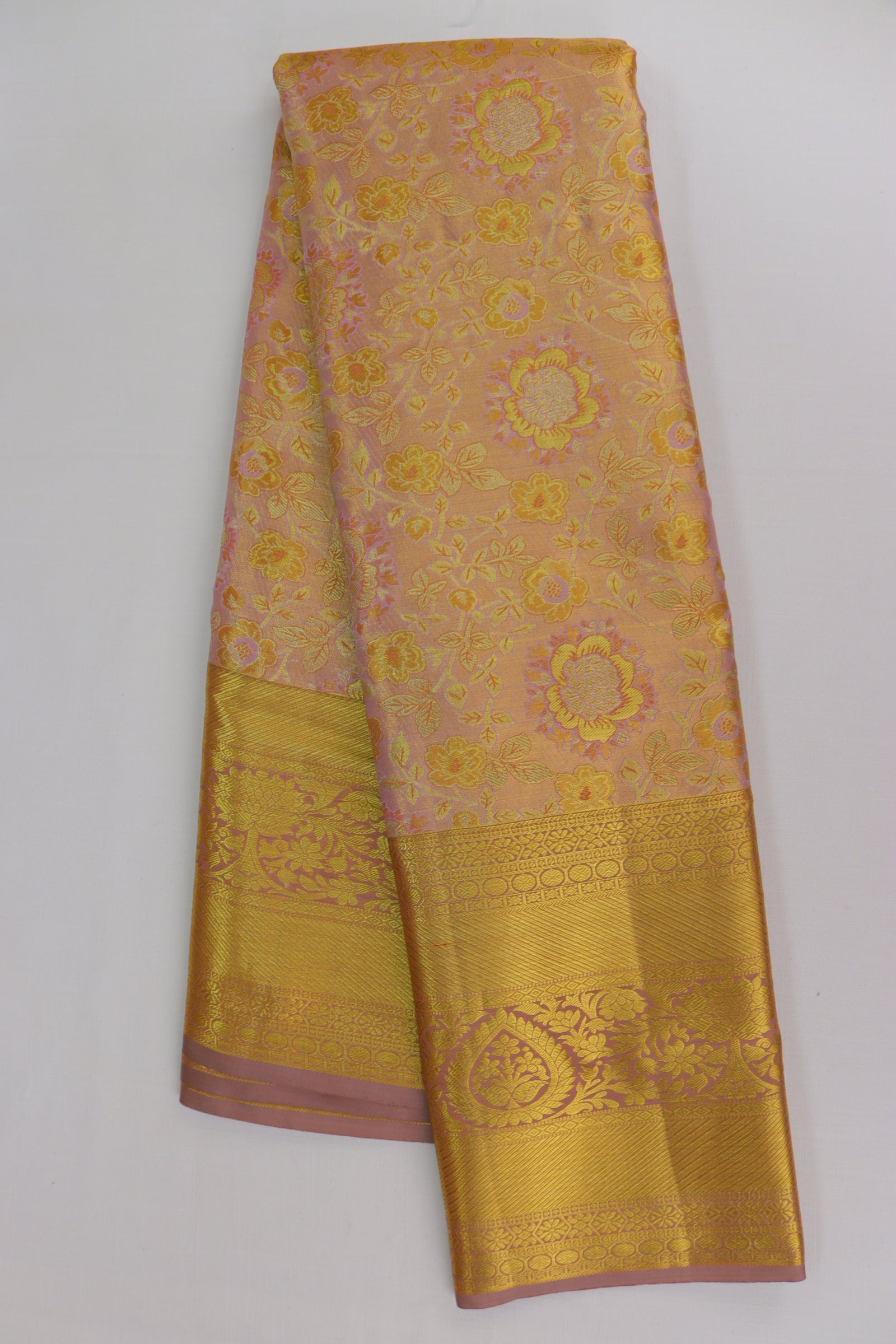 Indulge in sophistication with the Graceful Pink Kanjipuram Saree. The exquisite fabric offers lightweight comfort and opulent texture, perfect for any occasion. The Amazing Grey color adds an elegant touch, while the included versatile blouse allows for effortless styling. Elevate your collection with this expertly designed piece.