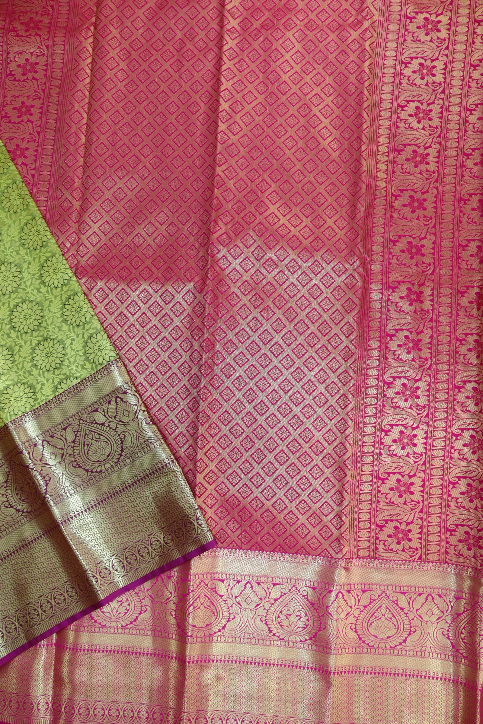Discover unparalleled luxury with our Lavish Light Green Kanjipuram Saree. Crafted from high-quality materials, it provides unbeatable comfort and sophistication. The delicate yet opulent fabric is perfect for any occasion. Complete your ensemble with a complementary blouse and elevate your style with this Exquisite Green Kanjipuram Saree.