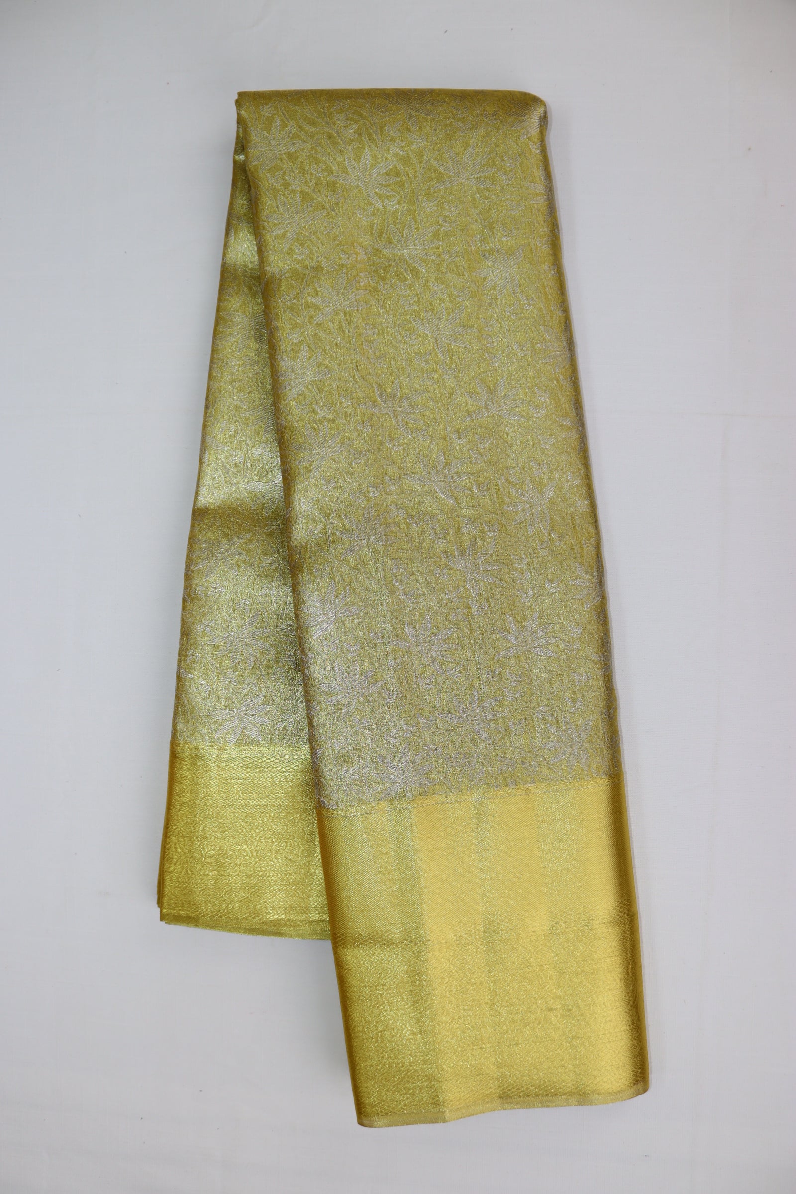 Elevate your fashion game with the Luxurious Gold Kanjipuram Saree. Handmade with premium materials, it guarantees both comfort and elegance. The versatile included blouse adds convenience to your wardrobe, while the flawless design makes it suitable for any occasion. Make a lasting impression with this timeless and refined saree.