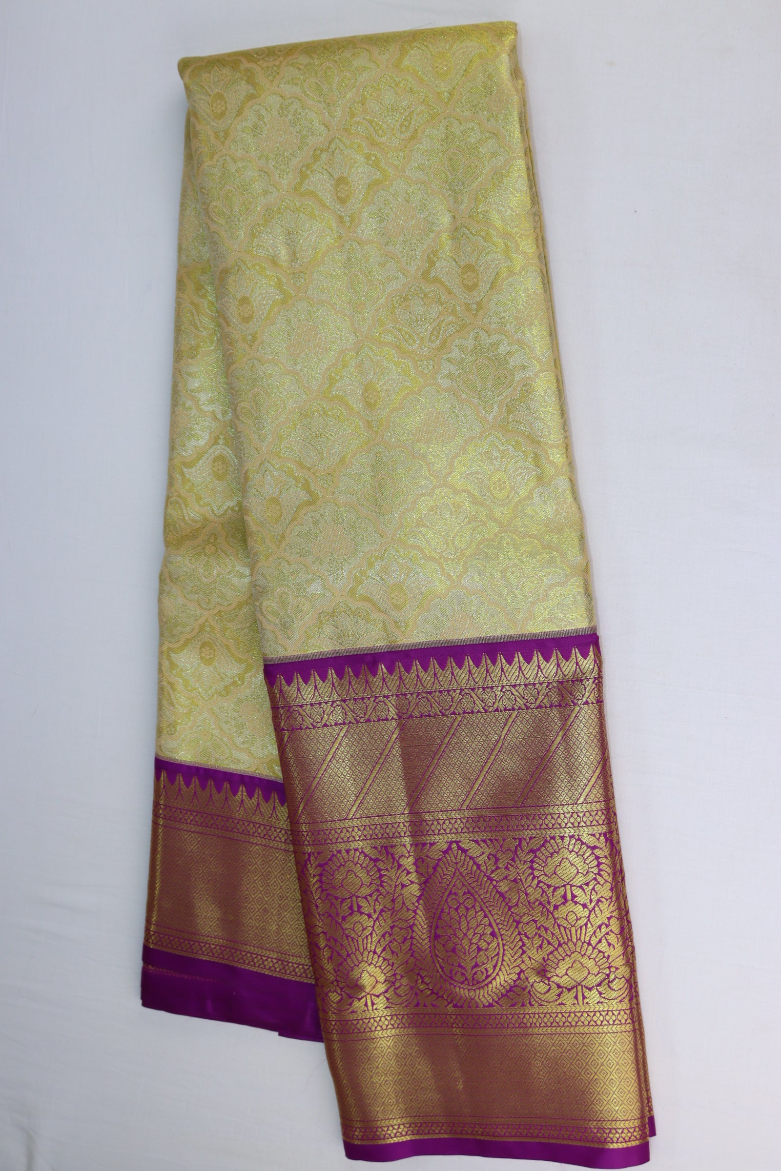 Experience true luxury and style with the exquisitely crafted Luxurious Yellow Tissue Kanjipuram Saree. Made with only top-quality materials, this saree effortlessly combines sophistication and comfort. Its lightweight and luxurious fabric makes it a versatile and comfortable choice for any occasion, and it comes with a complimentary blouse for added convenience.