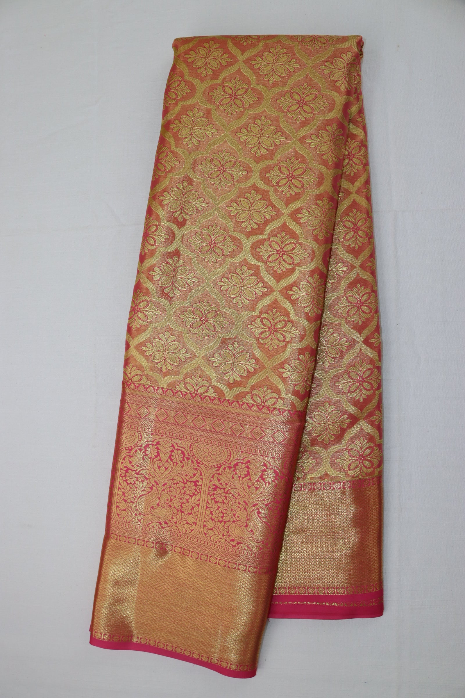 Experience pure elegance with our Mesmerizing Orange Kanjipuram Saree. Crafted from the finest materials, this luxurious Orange saree exudes sophistication and grace. Ideal for any event, its majestic design will elevate your fashion game. Comes with a versatile blouse, this magnificent piece is a timeless addition to your closet.