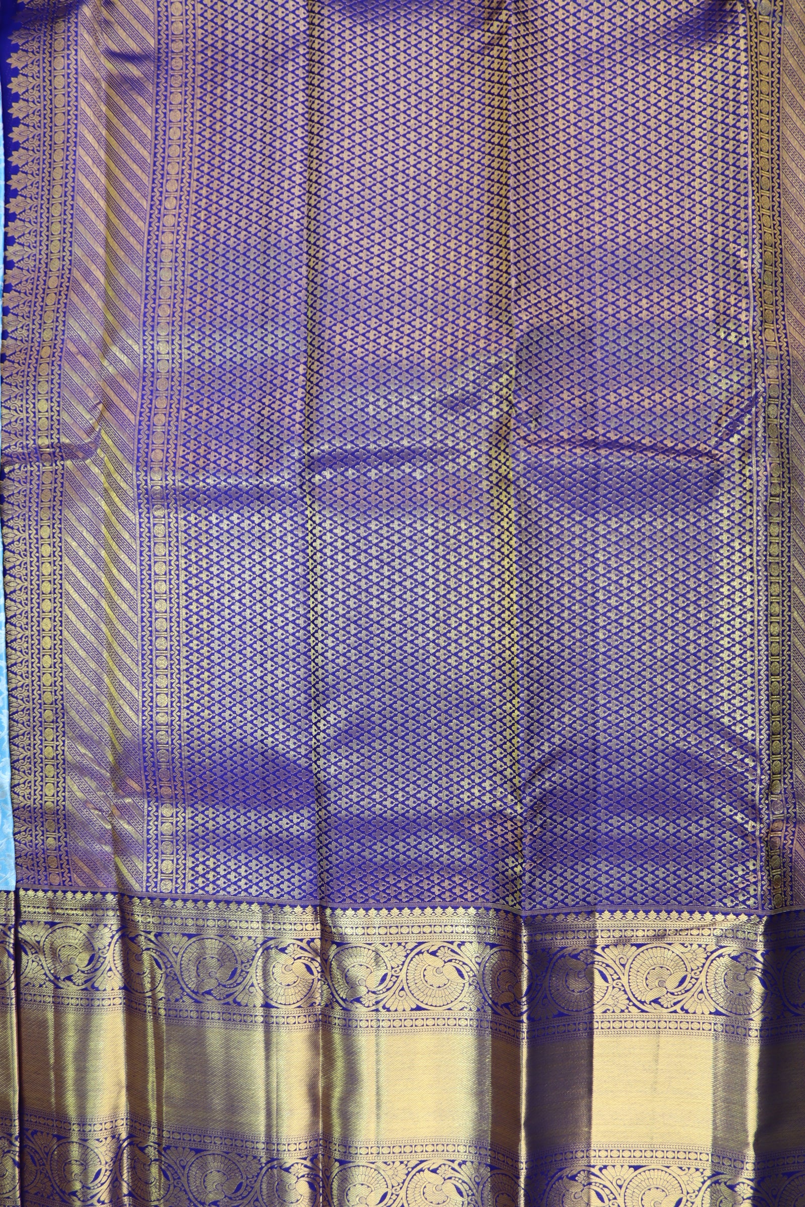 Discover the epitome of luxury with our Opulent Blue Kanjipuram Saree. Crafted with premium materials, this saree offers a lightweight and elegant design, perfect for any occasion. The versatile blouse and iconic shade add a touch of sophistication to your wardrobe, making it a must-have. Upgrade your style game now.