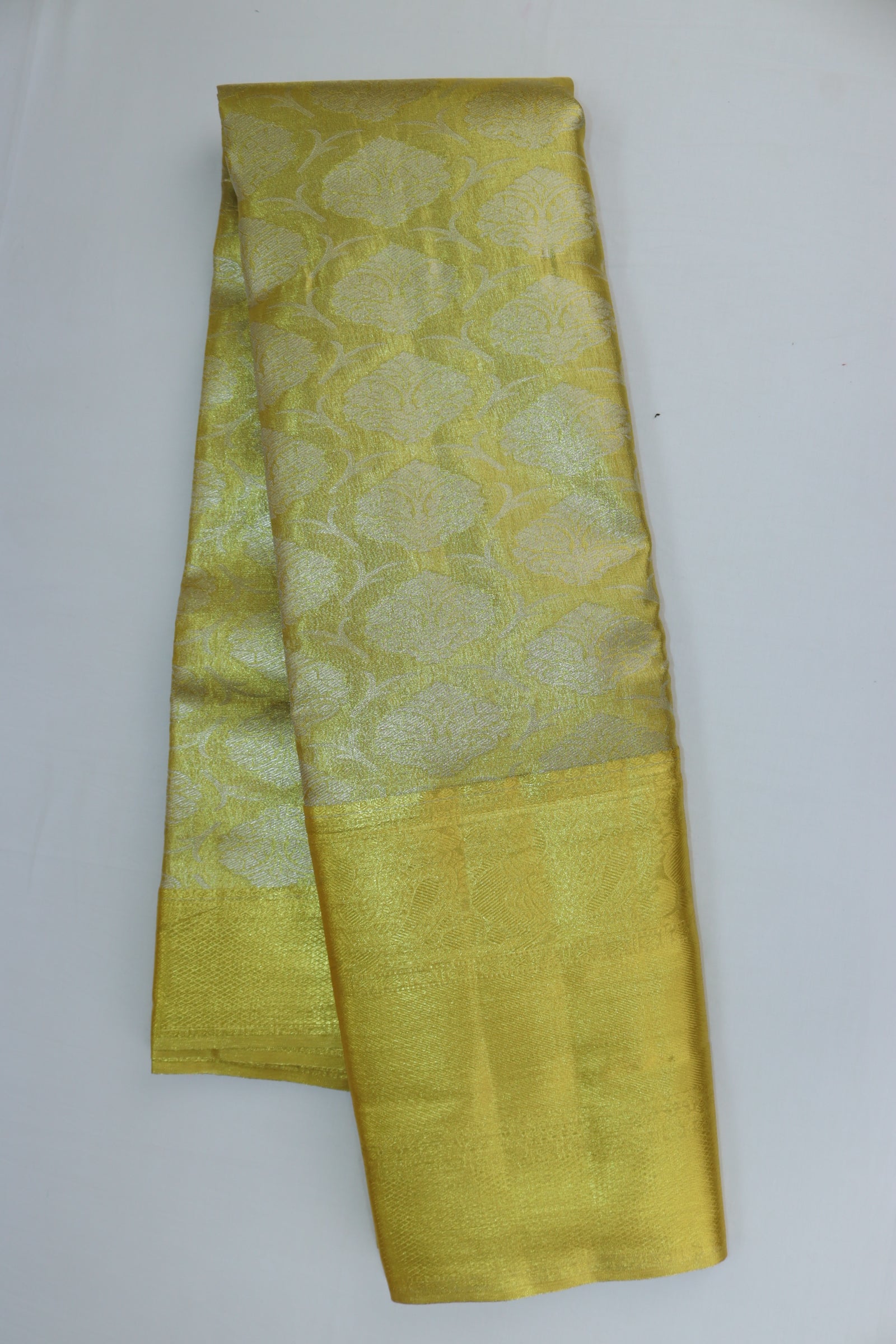 Elevate your wardrobe with the sophisticated Lemon Yellow Kanjipuram Saree, meticulously made from high-quality materials for unmatched comfort and style. The accompanying blouse adds to the versatility and elegance of this essential garment, perfect for any occasion.