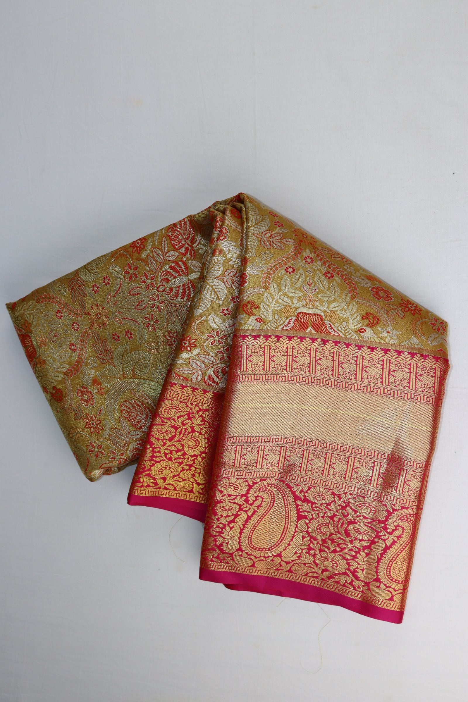 Experience sophistication and minimalism with our Opulent Orange Kanjipuram Saree. Made with high-quality materials and crafted by industry professionals, its lightweight fabric provides versatility and ease. Ideal for any event, it also includes a complementary blouse for a polished ensemble.