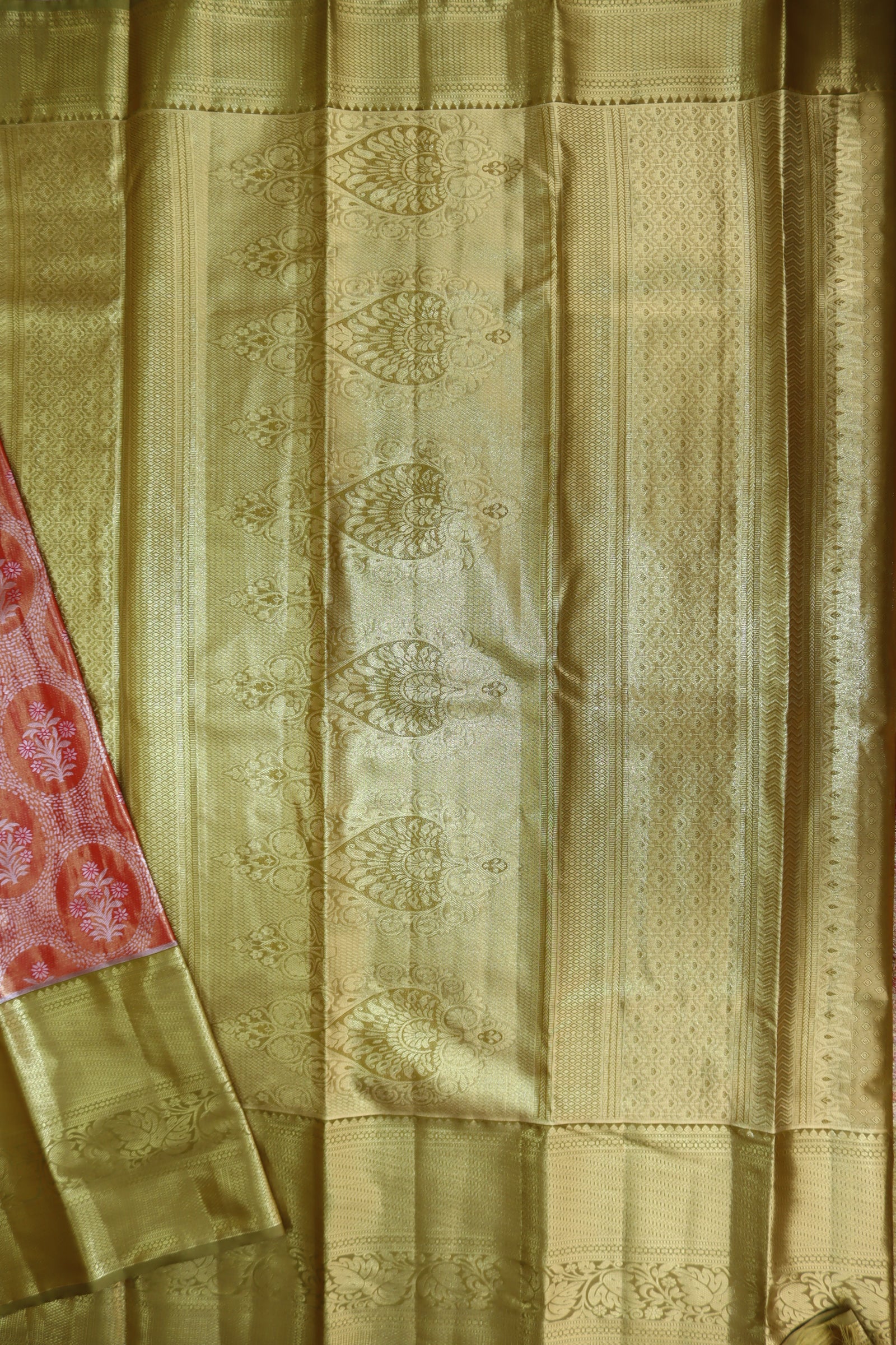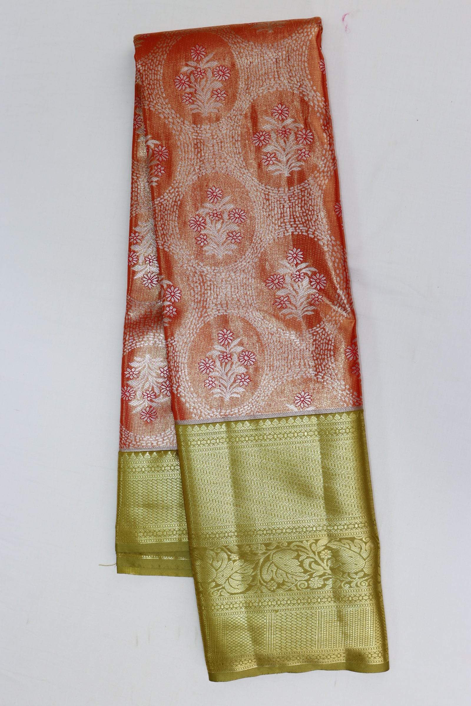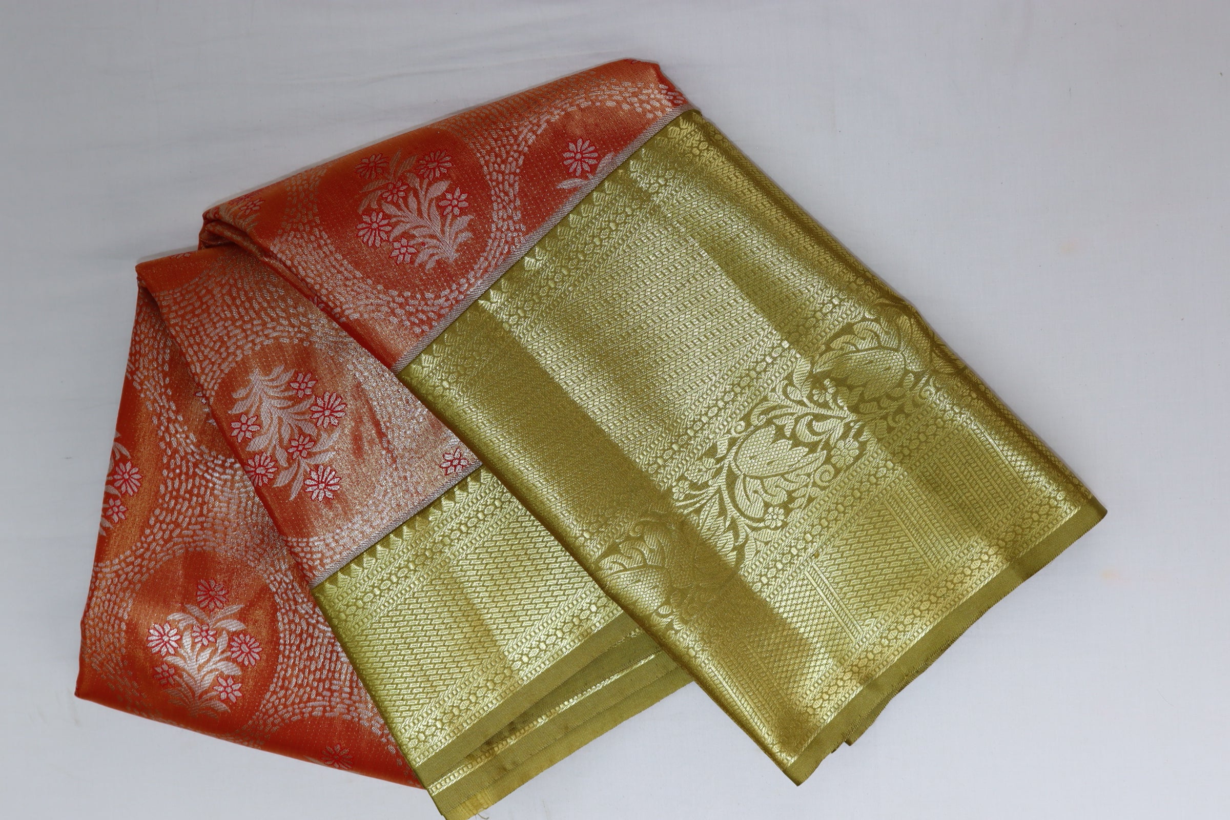 Experience the opulence of our exquisite Orange Kanjipuram Saree. Crafted with high-quality materials by skilled artisans, this saree embodies sophistication and grace. Its lightweight fabric offers both comfort and fashion, making it perfect for any occasion. Complete your ensemble with the expertly tailored blouse. Elevate your fashion sense now.