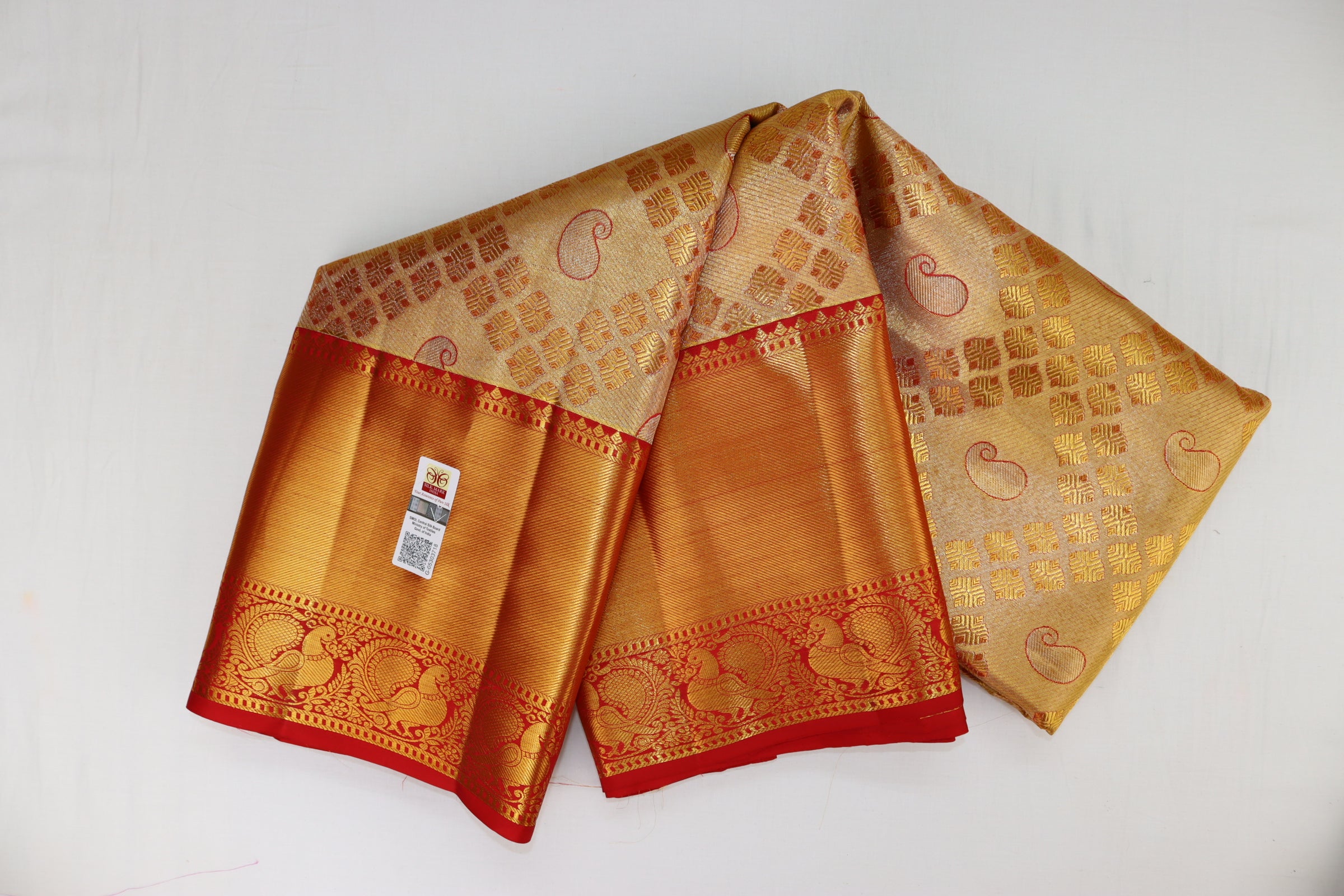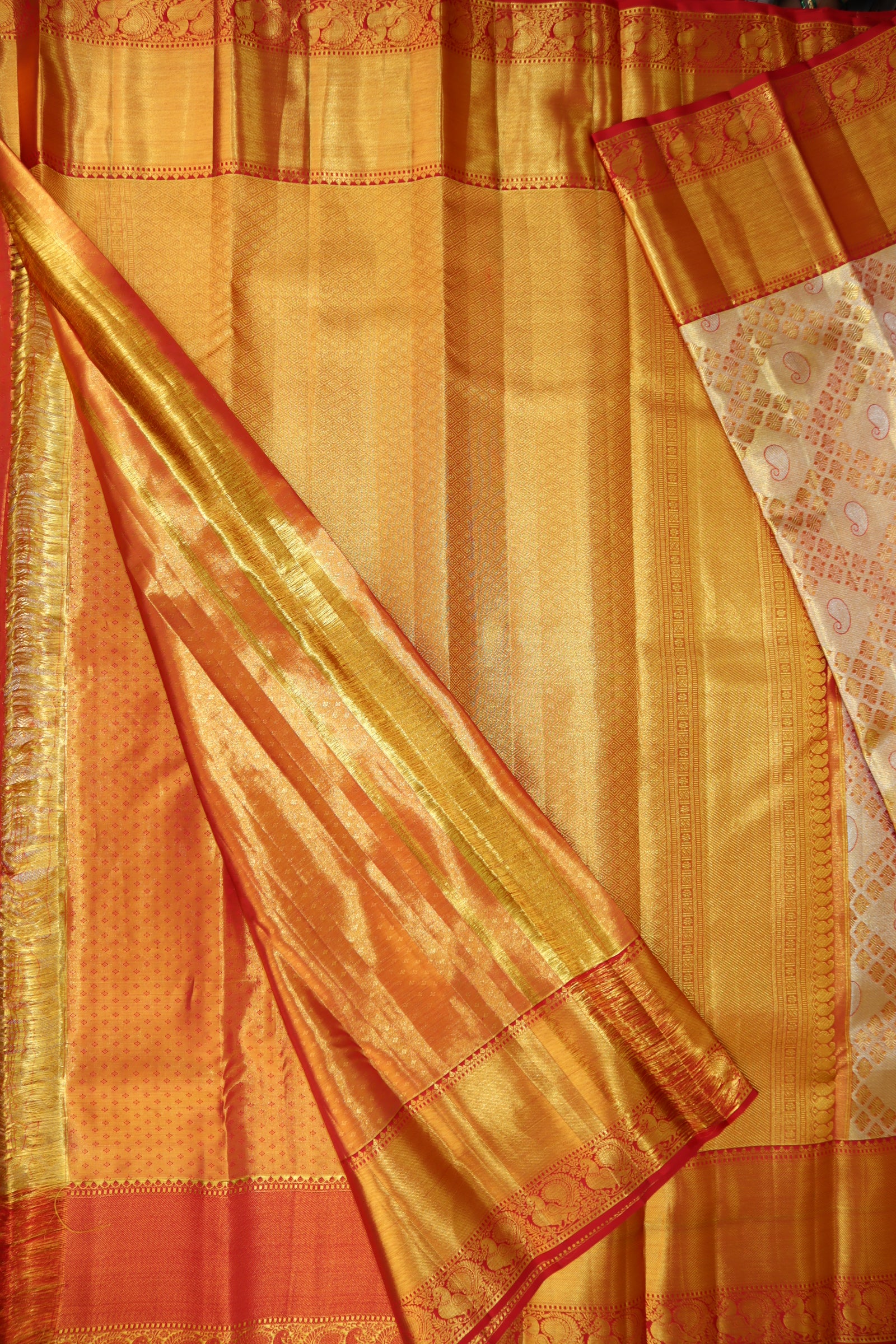 Upgrade your wardrobe with our Regal Cream Kanjipuram Saree. Made with premium materials, this stunning yellow saree offers both elegance and comfort. The bold blouse adds a touch of glamour to any occasion, making this a versatile and timeless piece. Elevate your style and make a statement with this must-have saree.