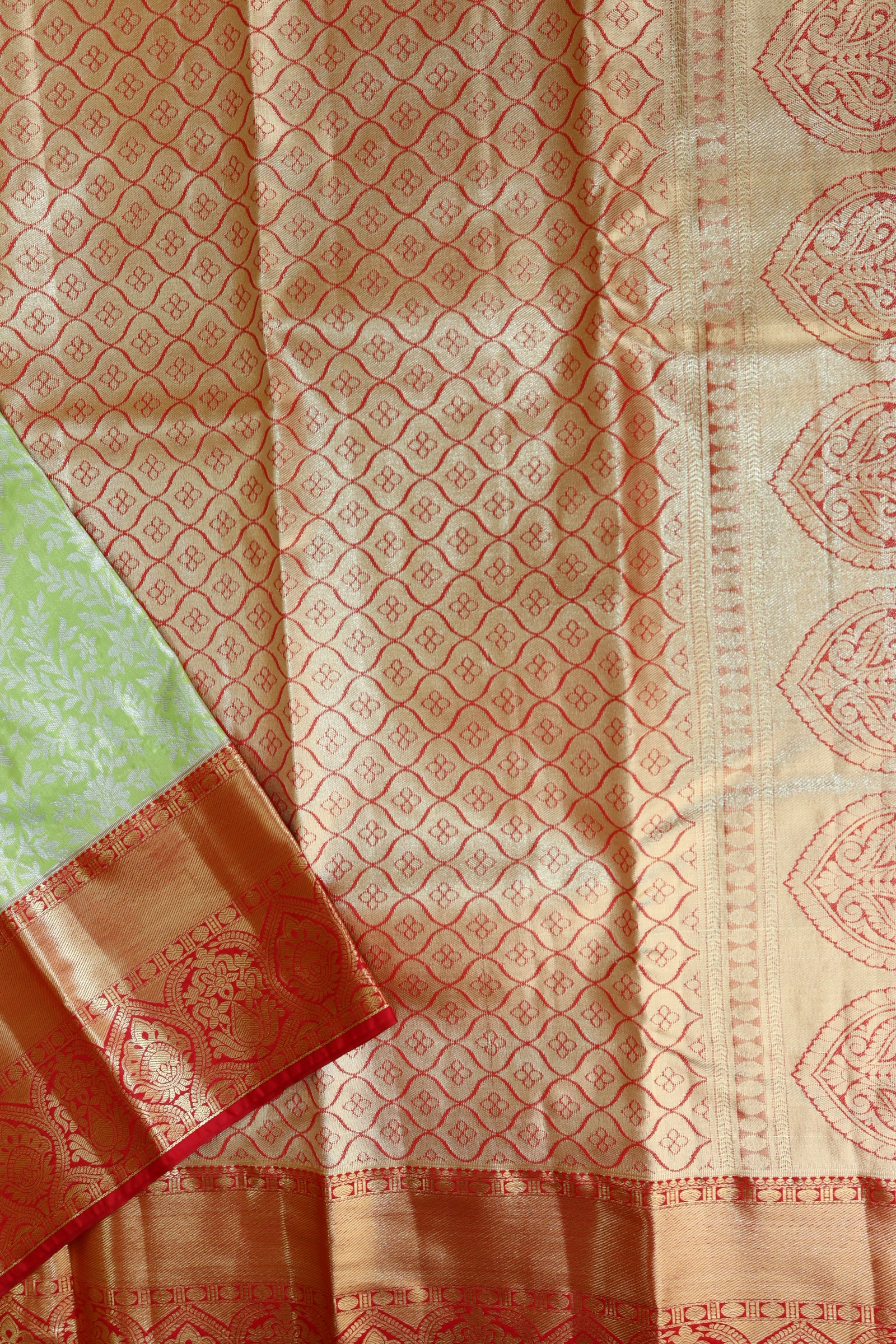 Experience elevated style with our exquisite Green Tissue Kanjipuram Saree. Crafted with premium materials, this saree exudes sophistication and comfort. The lightweight fabric offers versatility and ease, making it ideal for any occasion. Includes a complimentary blouse for added convenience.