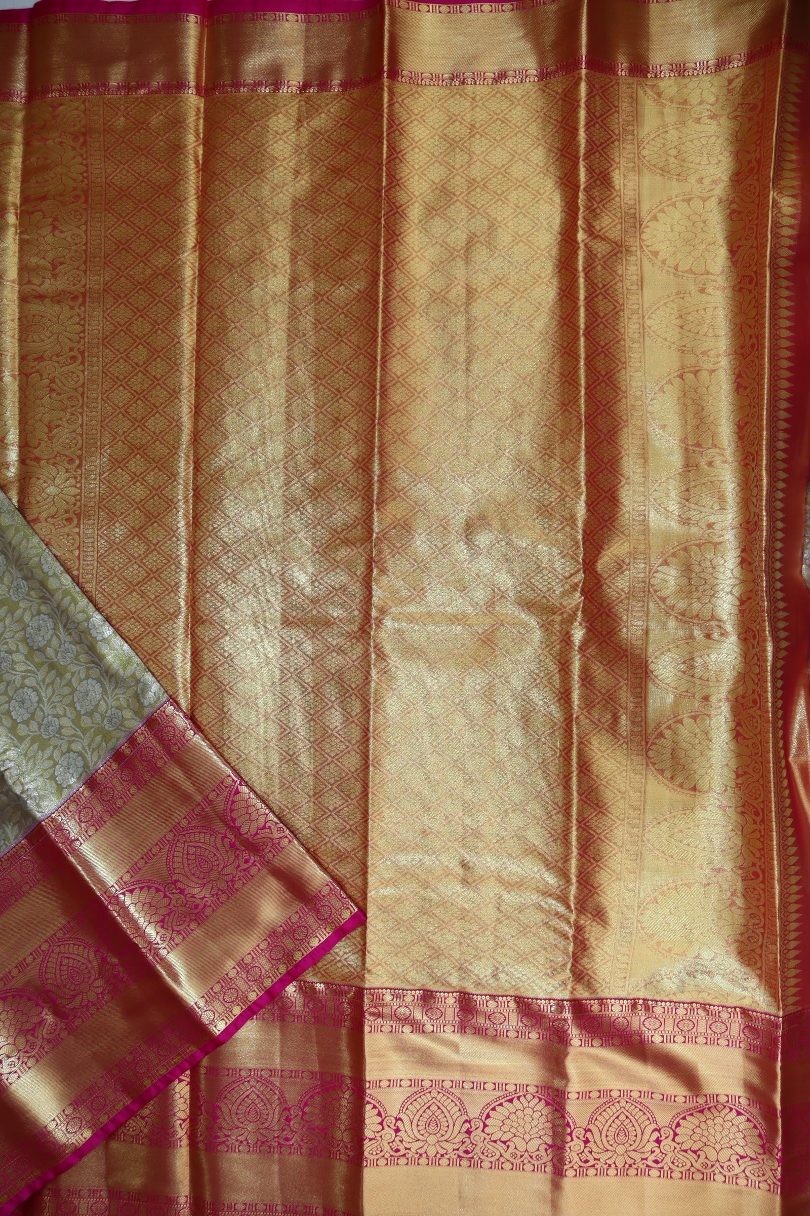 Regal Olive Green Tissue Kanjipuram Saree