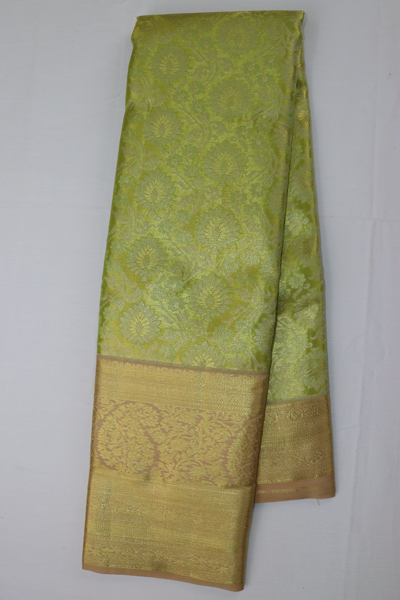 Elevate your style with the Regal Pastel Green Kanjipuram Saree. Made from premium fabric, this luxurious garment offers unparalleled comfort and texture. The elegant Gold color adds a hint of glamour while the included blouse allows for effortless styling. Discover the essence of sophistication with this expertly crafted saree.