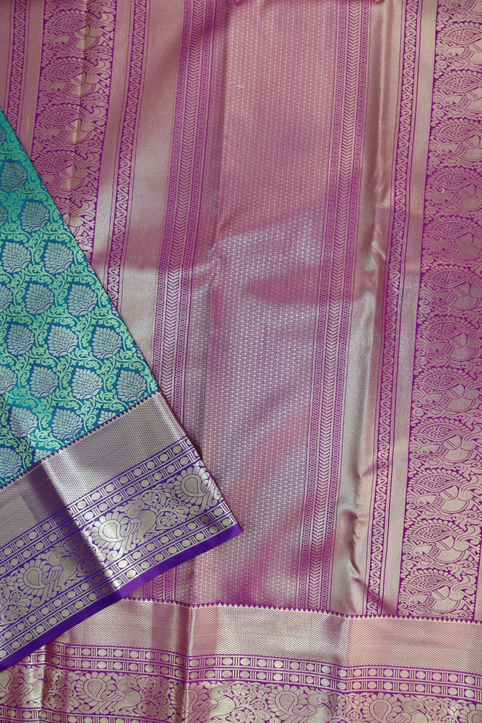 Experience the pinnacle of elegance with our Luxurious Teal Green Kanjipuram Saree. Crafted from high-quality materials, it offers unbeatable comfort and refinement. The lavish and delicate fabric is essential for any event. Enhance your appearance with a coordinating blouse and elevate your fashion with this luxurious saree.