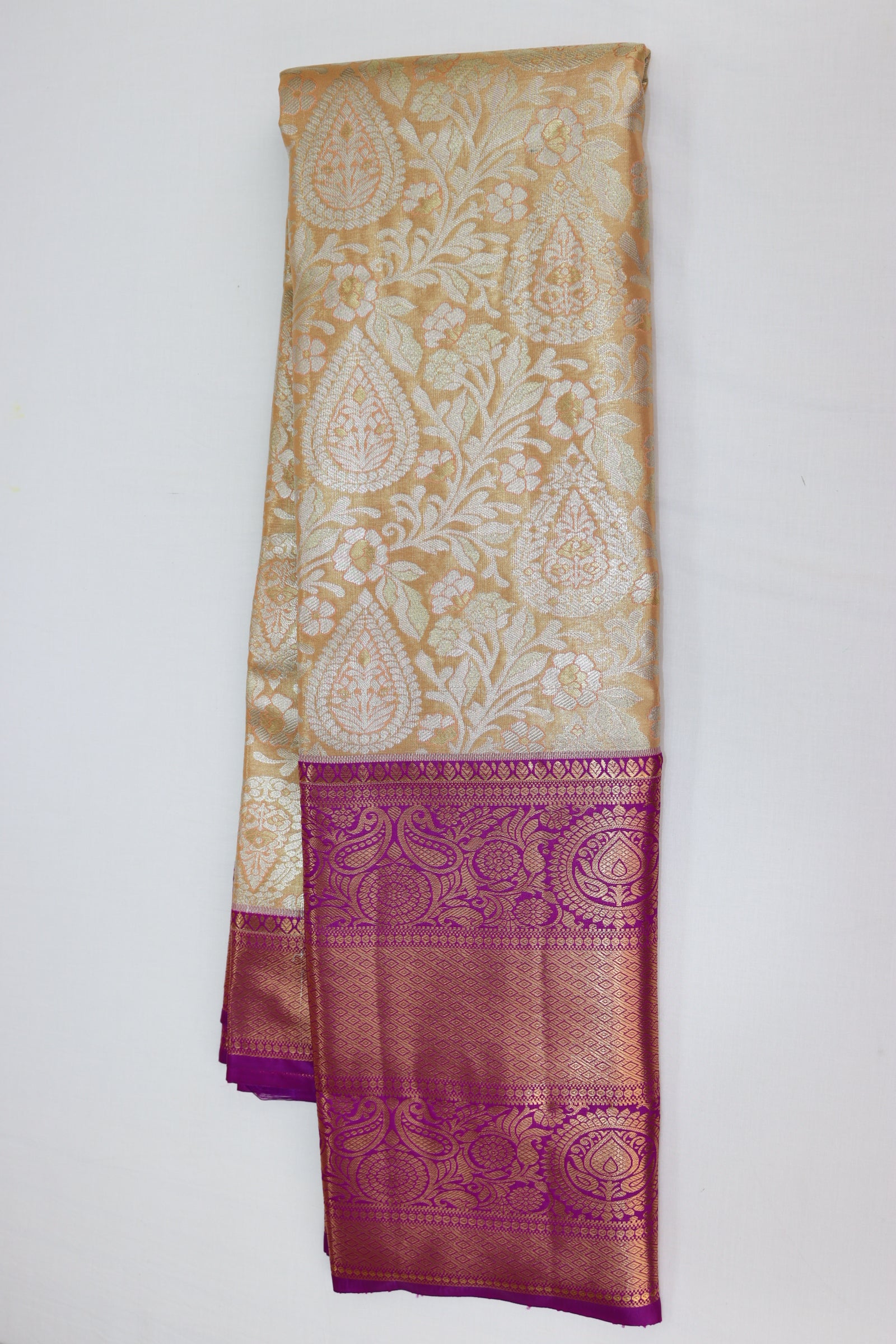 Elevate your style with our Rich Beige Kanjipuram Saree. Made with premium materials, it offers refined luxury and versatility. The elegant peach color and intricate texture make it a practical and stylish choice. Includes a matching blouse for a complete and confident look.