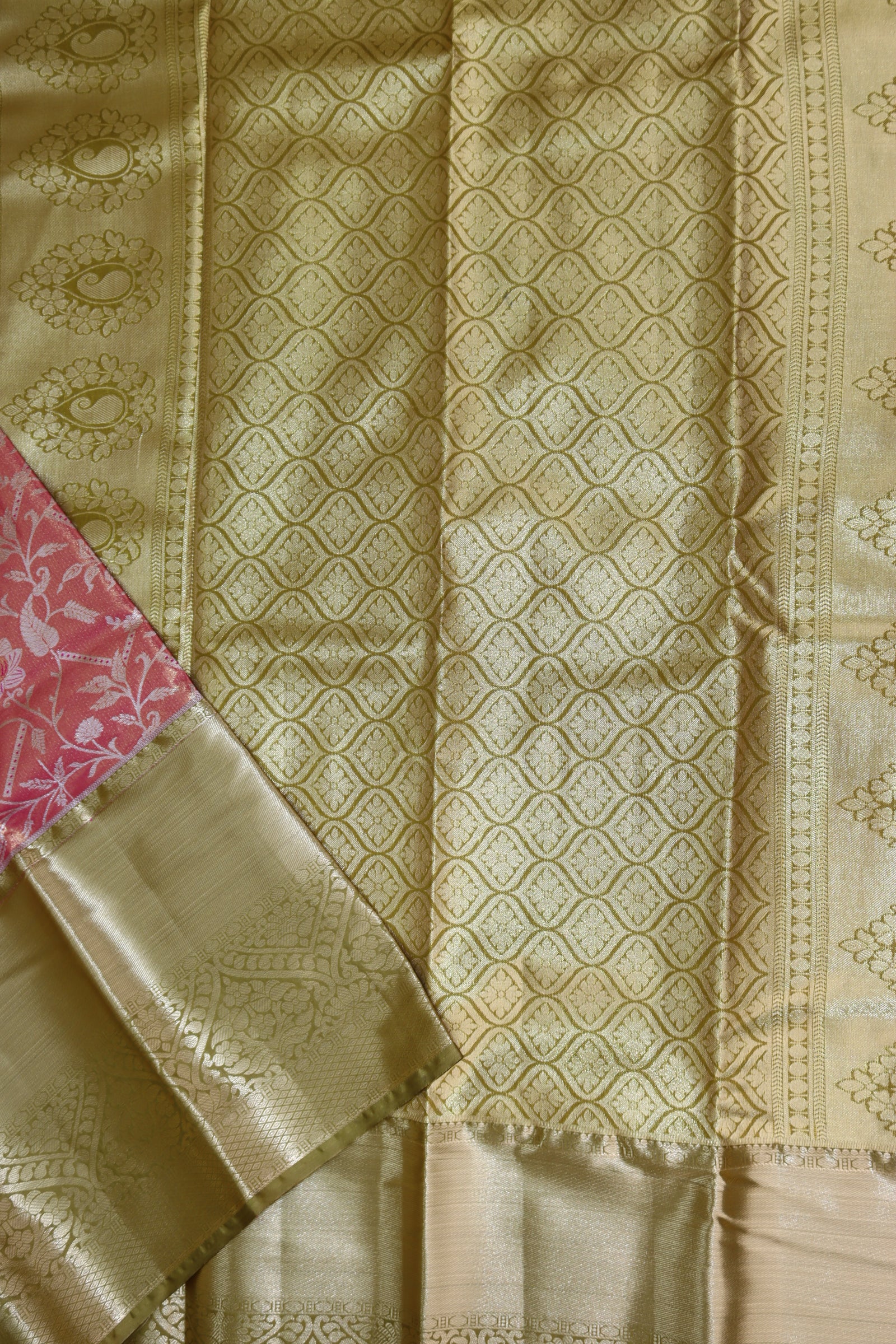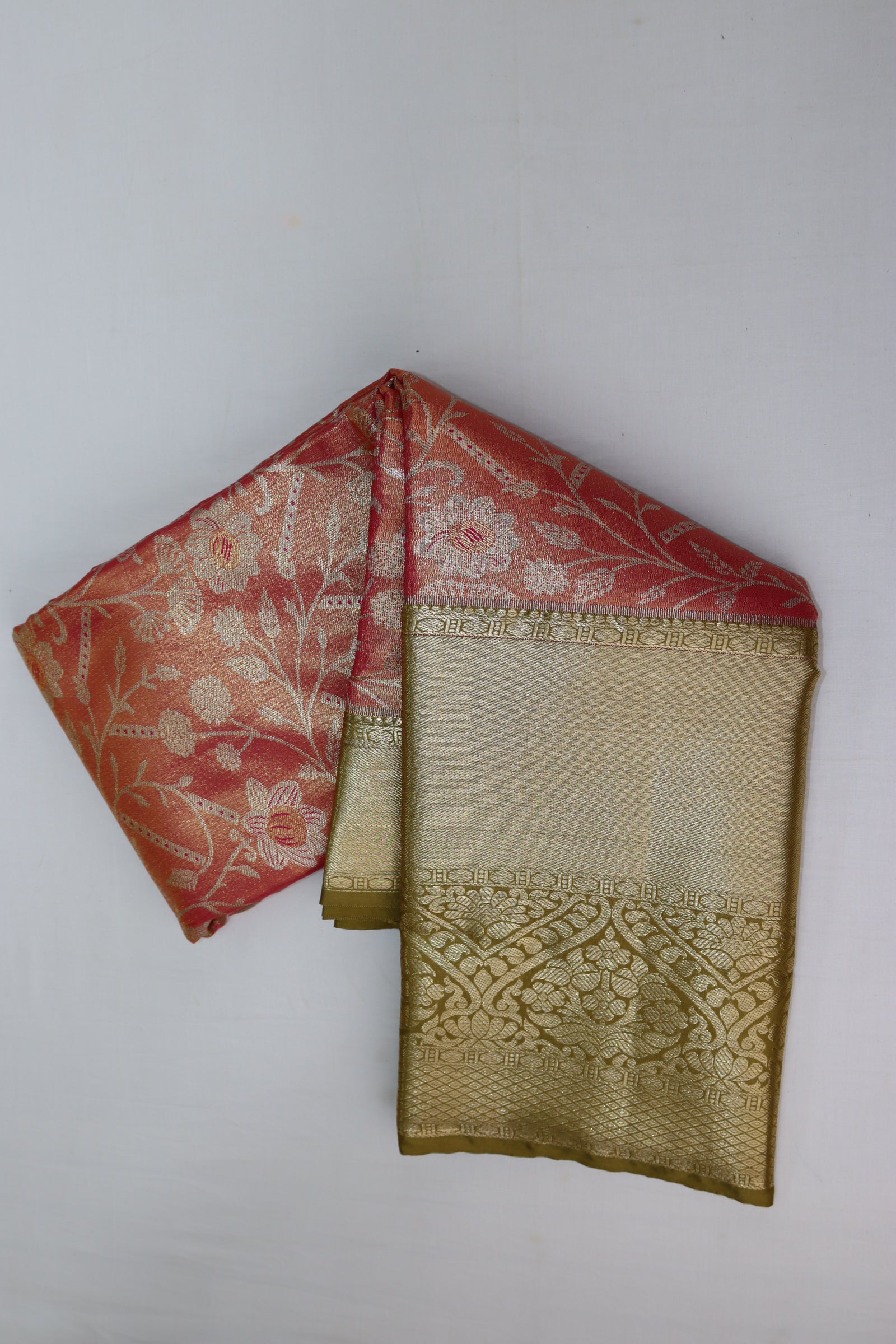This expertly crafted Rich Coral Pink Tissue Kanjipuram Saree uses high-quality materials to effortlessly bring together sophistication and comfort. The lightweight yet luxurious fabric makes it an ideal option for any event and comes with a matching blouse for added versatility.