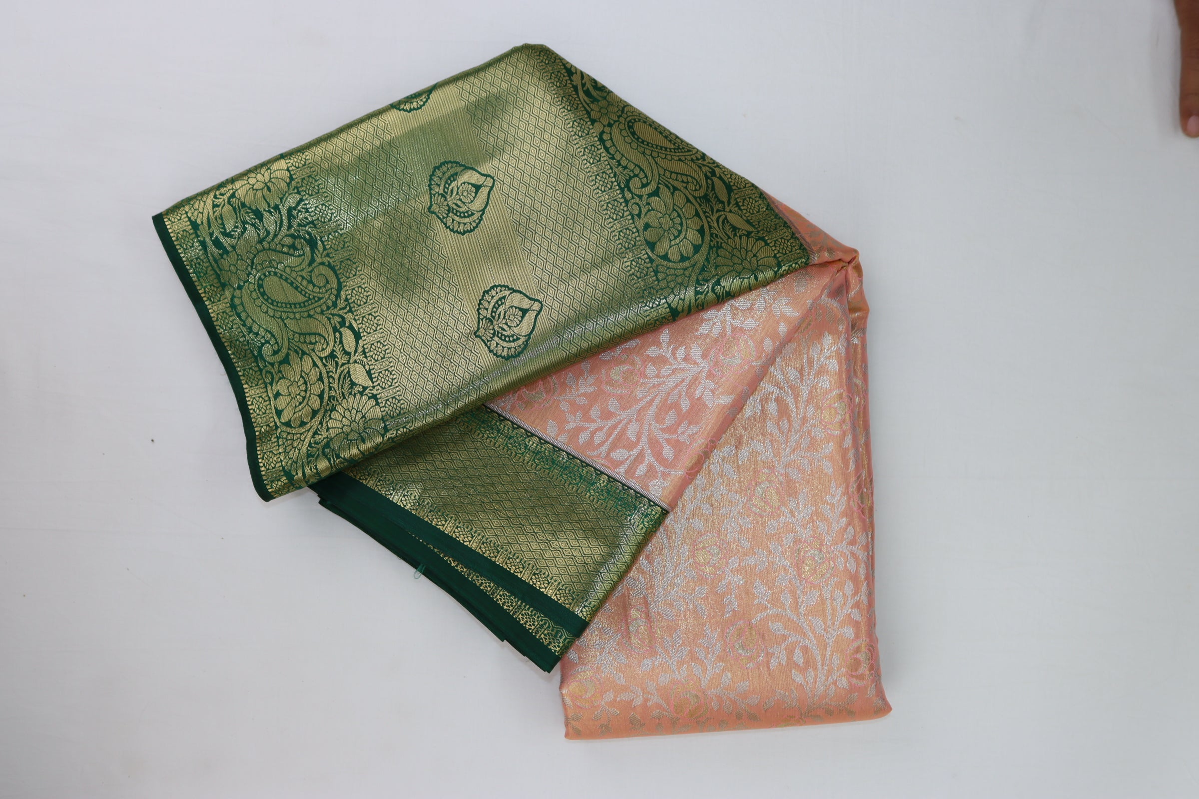 This sophisticated Rich Light Peach Kanjipuram Saree adds a sense of luxury and elegance to your appearance. With its intricate peach and gold weaving, it seamlessly blends traditional charm with contemporary allure. Created with premium quality material and crafted with precision, it offers versatility and sophistication for every event. Elevate your fashion with this magnificent saree.