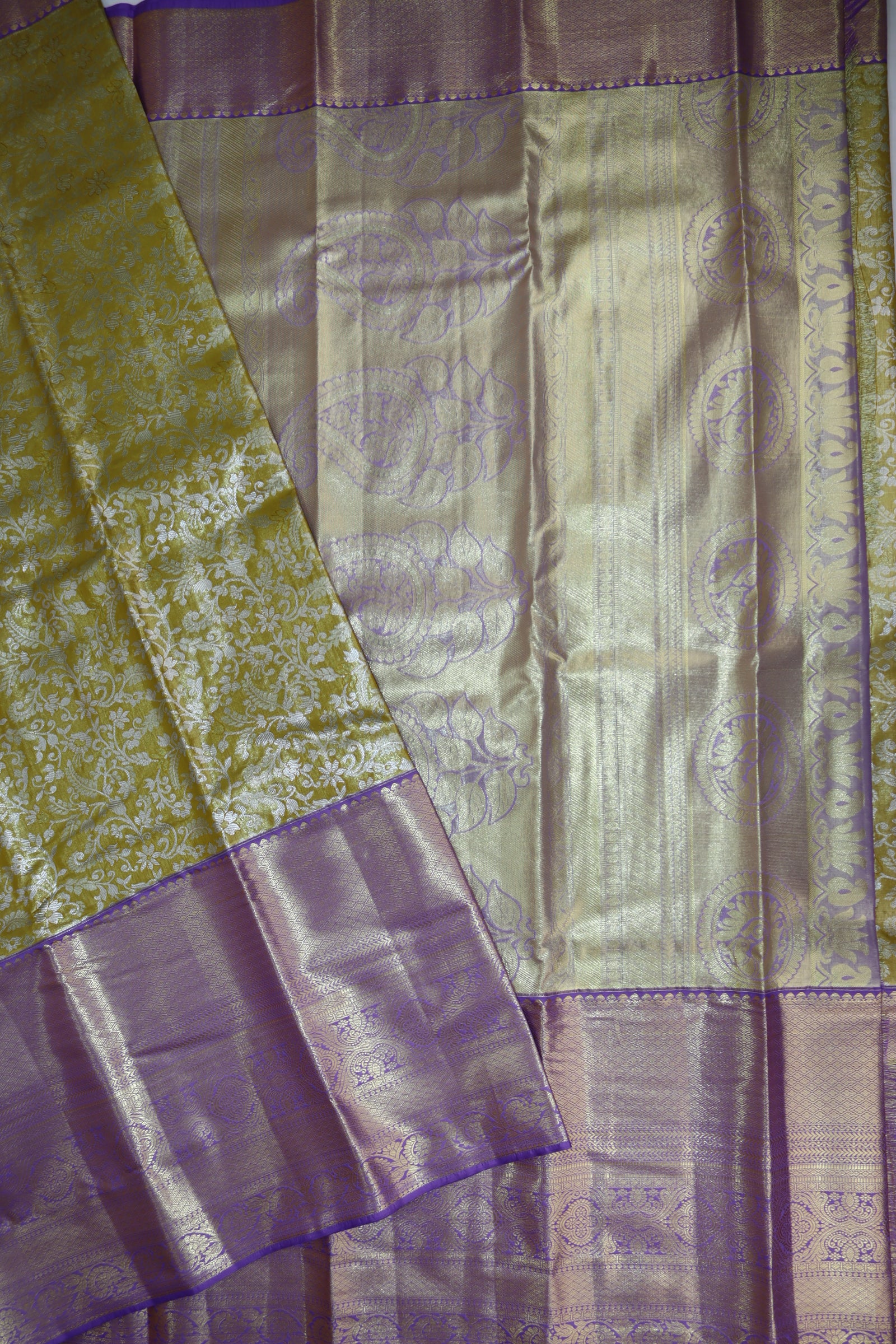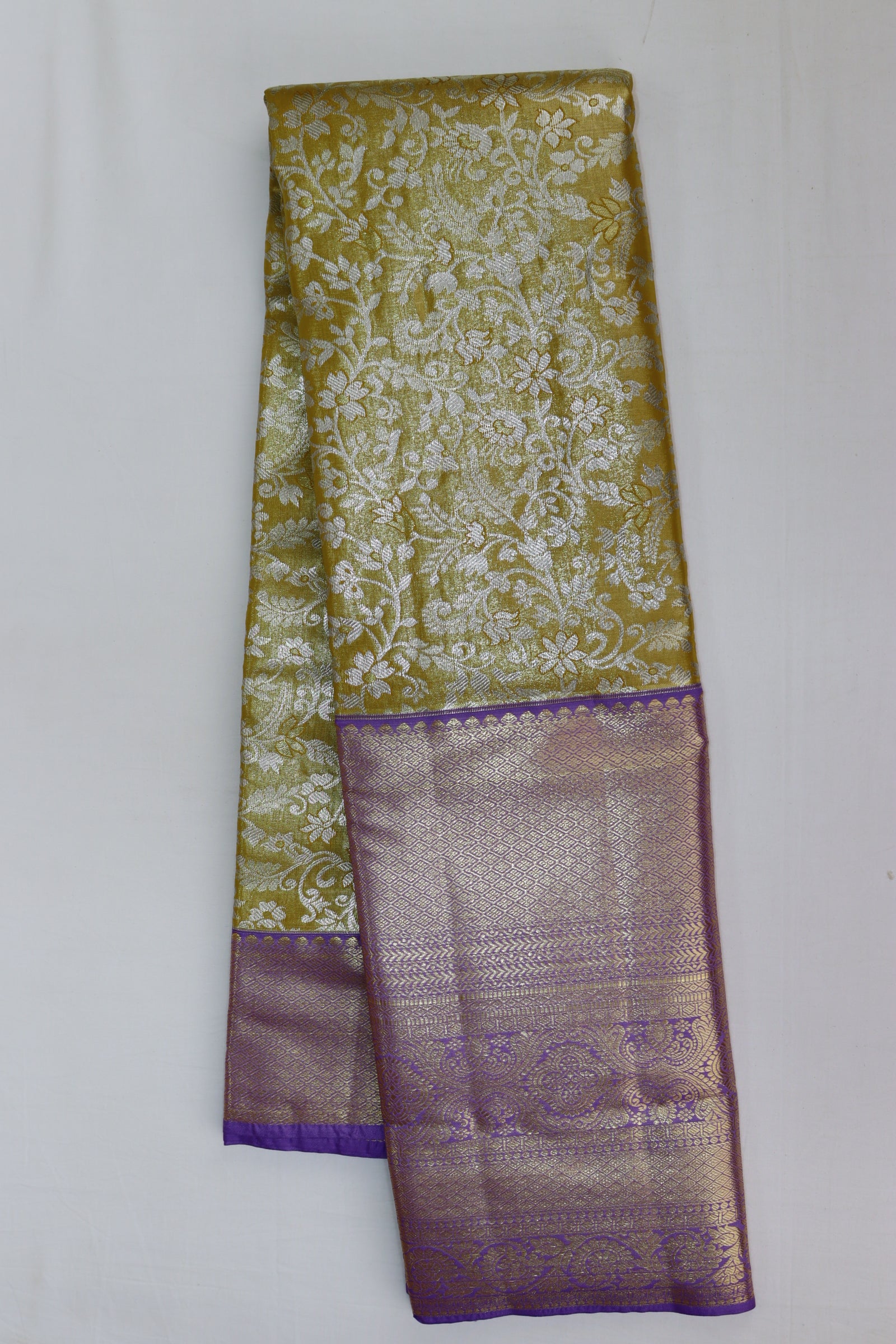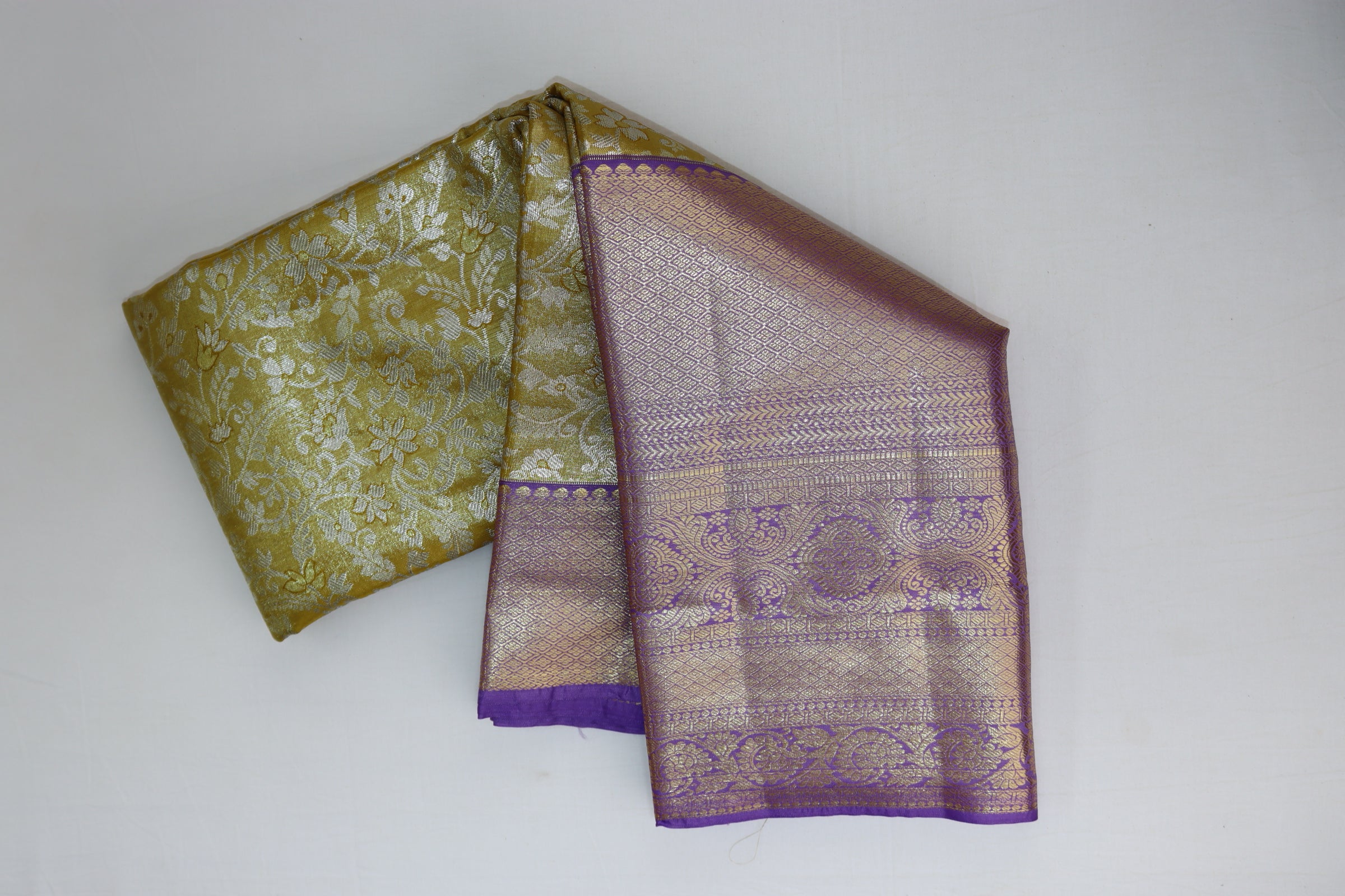 Elevate your style with our premium Quality Olive Green Kanjipuram Saree. This exquisite saree perfectly blends traditional and modern elements. Stand out at any event with this expertly crafted piece, made for a sophisticated and chic look.