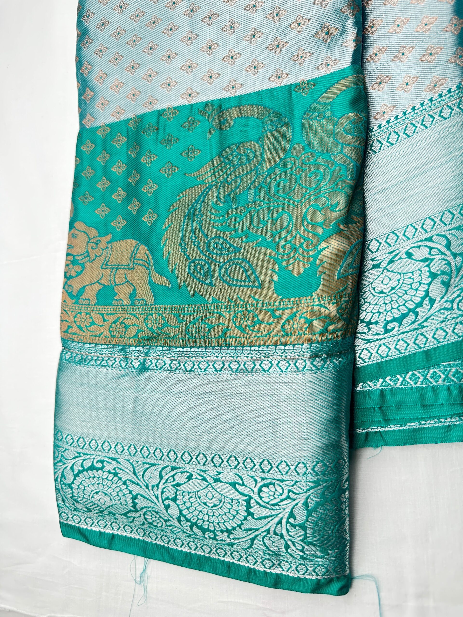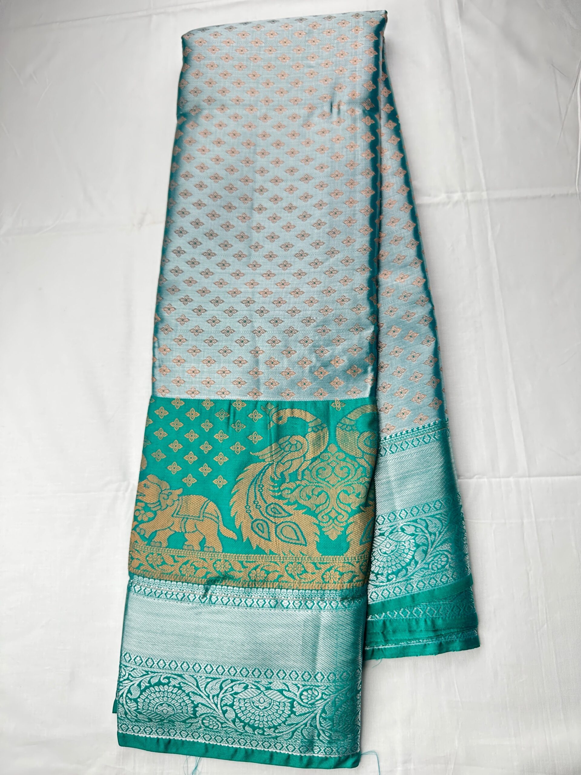 This Rich Pastel Green Kanjipuram Silk Saree is an exquisite choice for any special occasion. Its luxurious silk fabric gives a sophisticated look and feel, and the vibrant color ensures you make a statement. Perfect for a night of elegance..