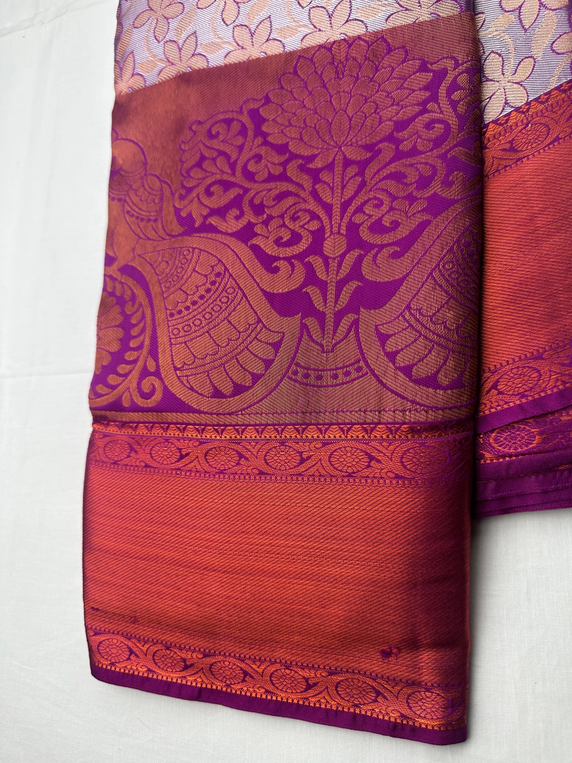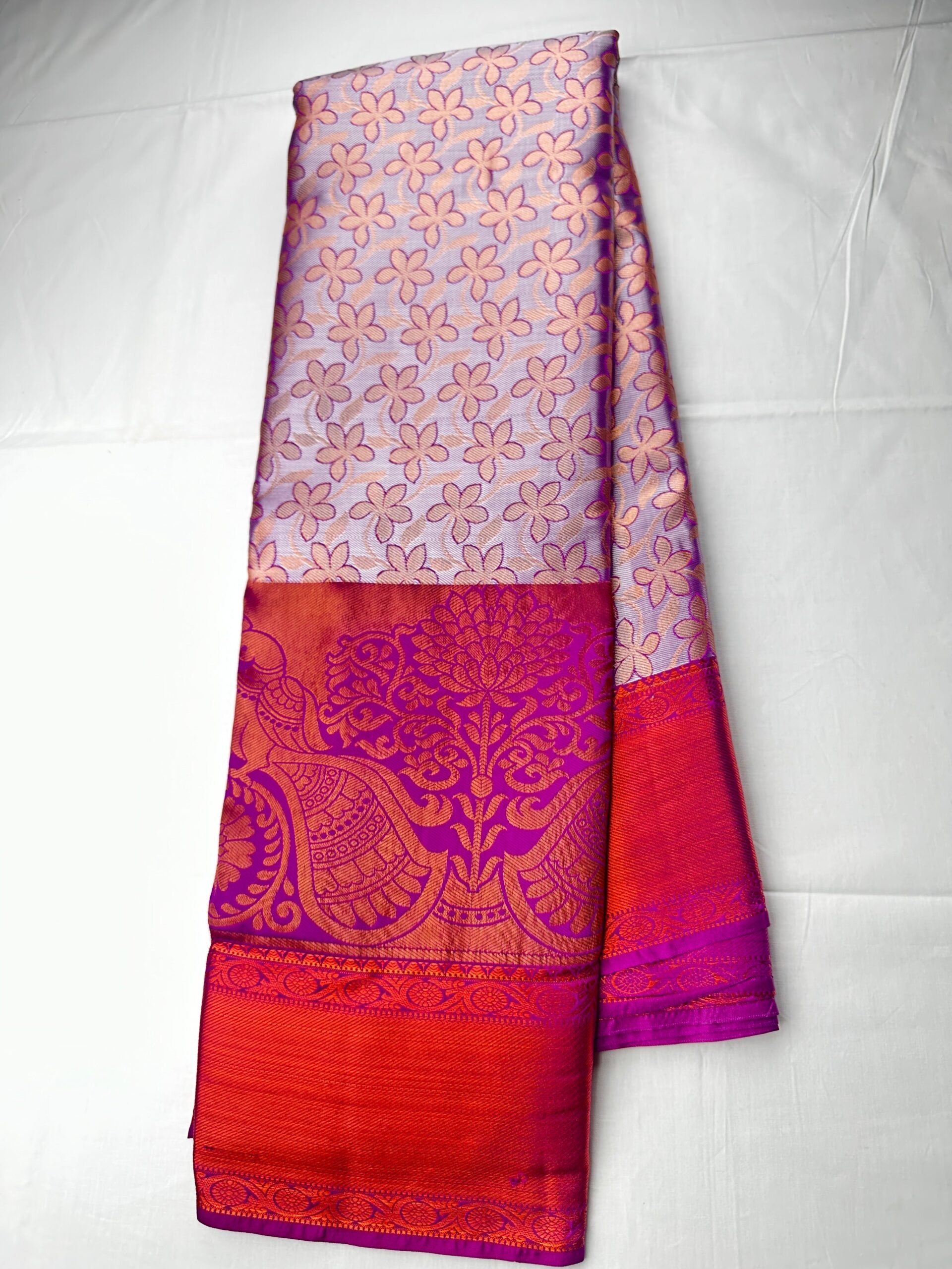 Feel elegance with this luxurious Rich Pink Kanjipuram Silk Saree. It is exquisitely crafted with premium silk, designed to provide you with a graceful look. Perfect for special occasions, this saree will make you look glamorous yet elegant.