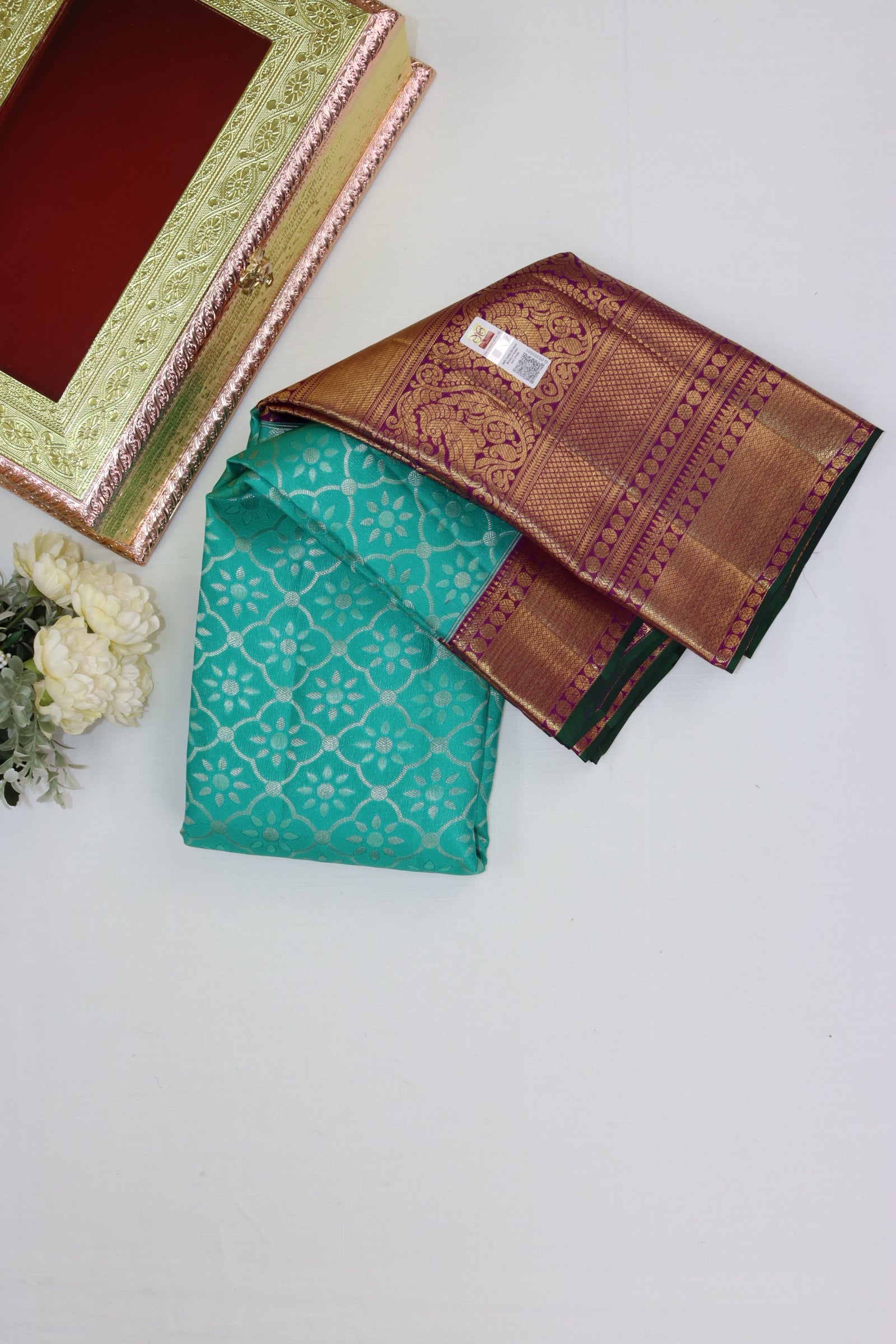 Experience the epitome of elegance with the Royal Teal Green Kanjipuram Saree. Meticulously crafted with intricate details, this saree radiates sophistication and class. With its lightweight design and versatile blouse, it offers unparalleled comfort and style, making it an essential addition to your wardrobe. Uncover the ultimate fusion of high-fashion and opulence with this exceptional saree.