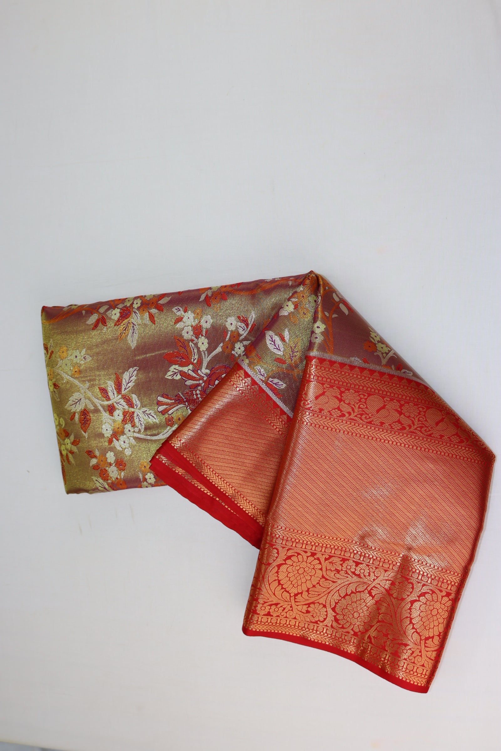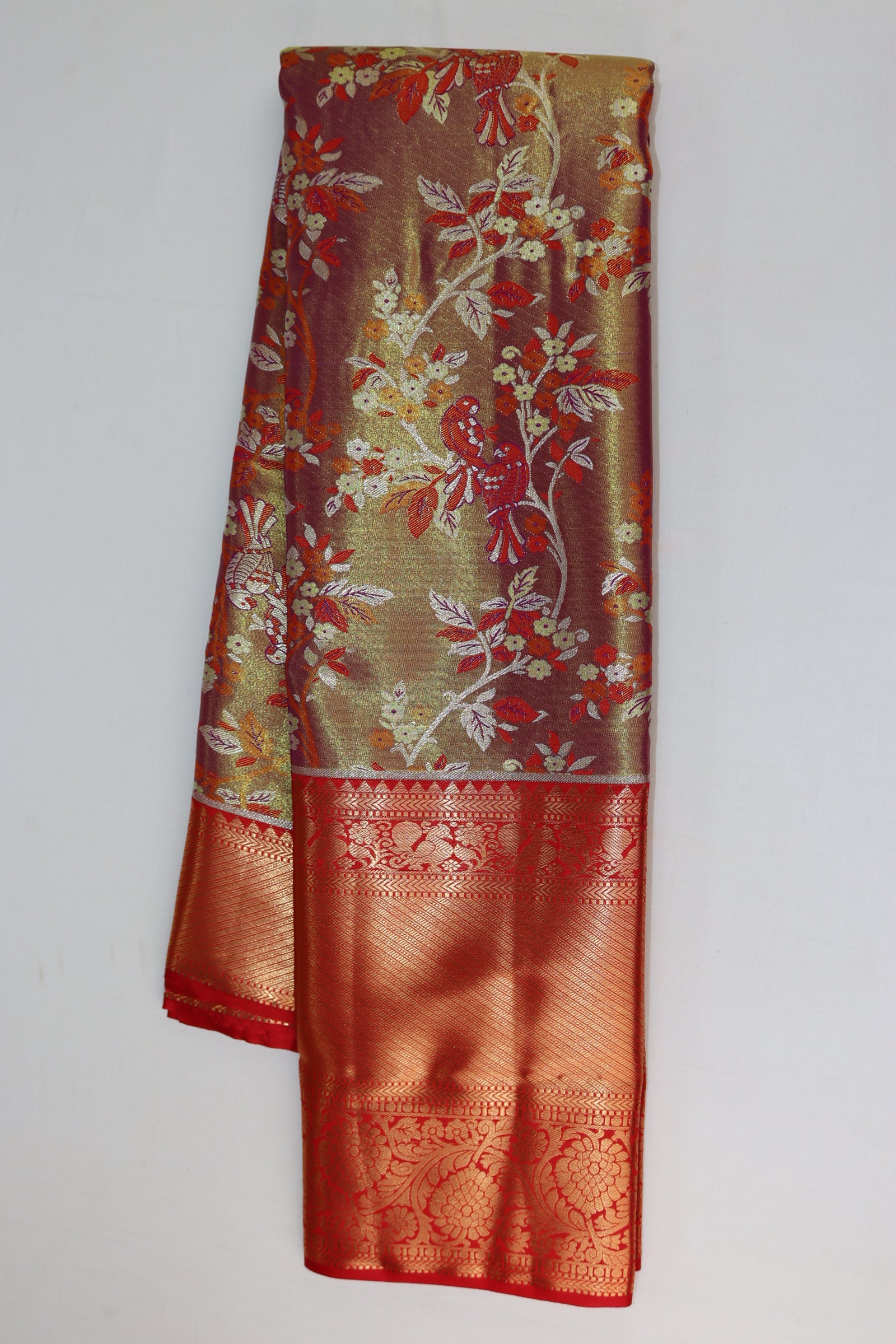 Elevate your style with our stunning Brown Kanjipuram Saree. Crafted from luxurious silk, our Trendy Yellow Saree features a regal peach color and refined design. Its matching blouse offers elegance and comfort, making it perfect for any occasion. Indulge in sophistication and stand out from the crowd.