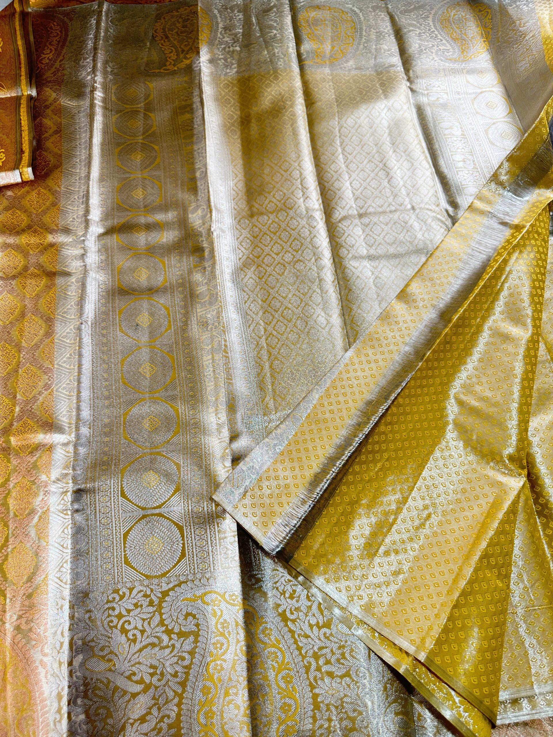 This beautiful Timeless Yellow Kanjipuram Silk Saree is crafted with care from premium silk fabric. Featuring a vibrant hue and intricate details, this garment is a perfect choice for any special occasion.