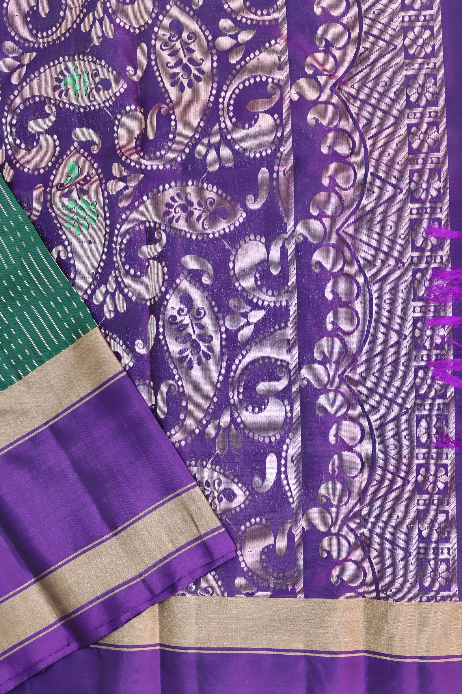 Elevate your wardrobe with the exquisite Traditional Green Kanjipuram Saree, skillfully made with top-quality fabrics for ultimate comfort and versatility. Its sophisticated design is perfect for any event and comes with a matching blouse. Add a touch of elegance with this lavish and polished saree, essential for industry professionals.