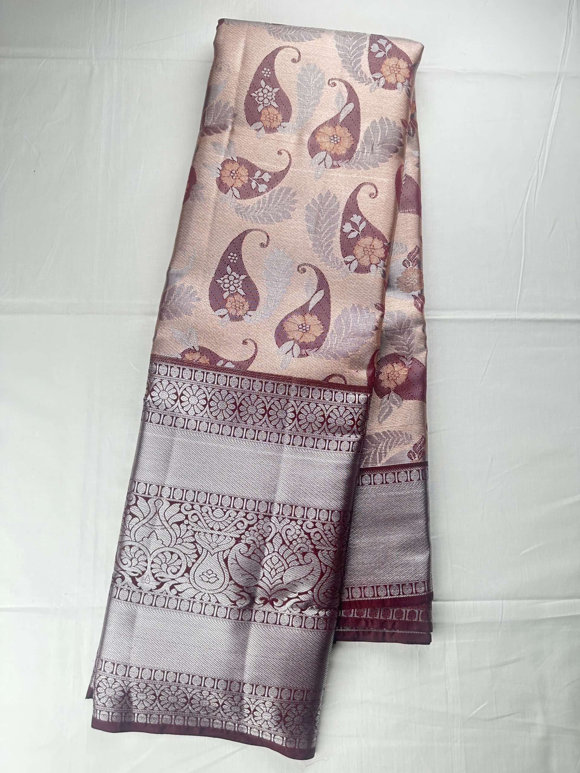This stunning Trendy Brown Kanjipuram Silk Saree is created from the highest quality silk, providing the perfect combination of comfort and luxury. Its beautiful brown hue exudes class and elegance, making it an ideal choice for any special occasion.