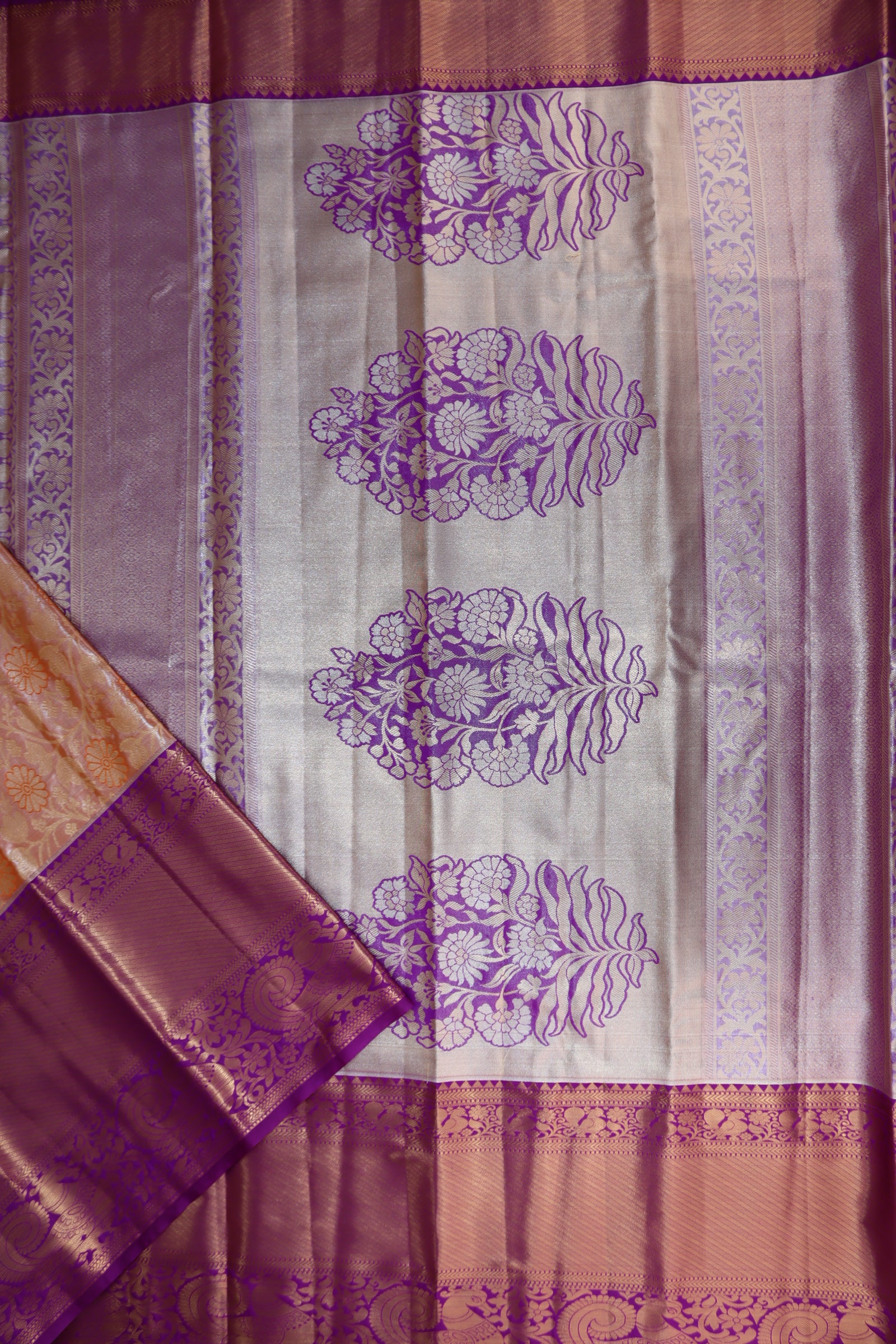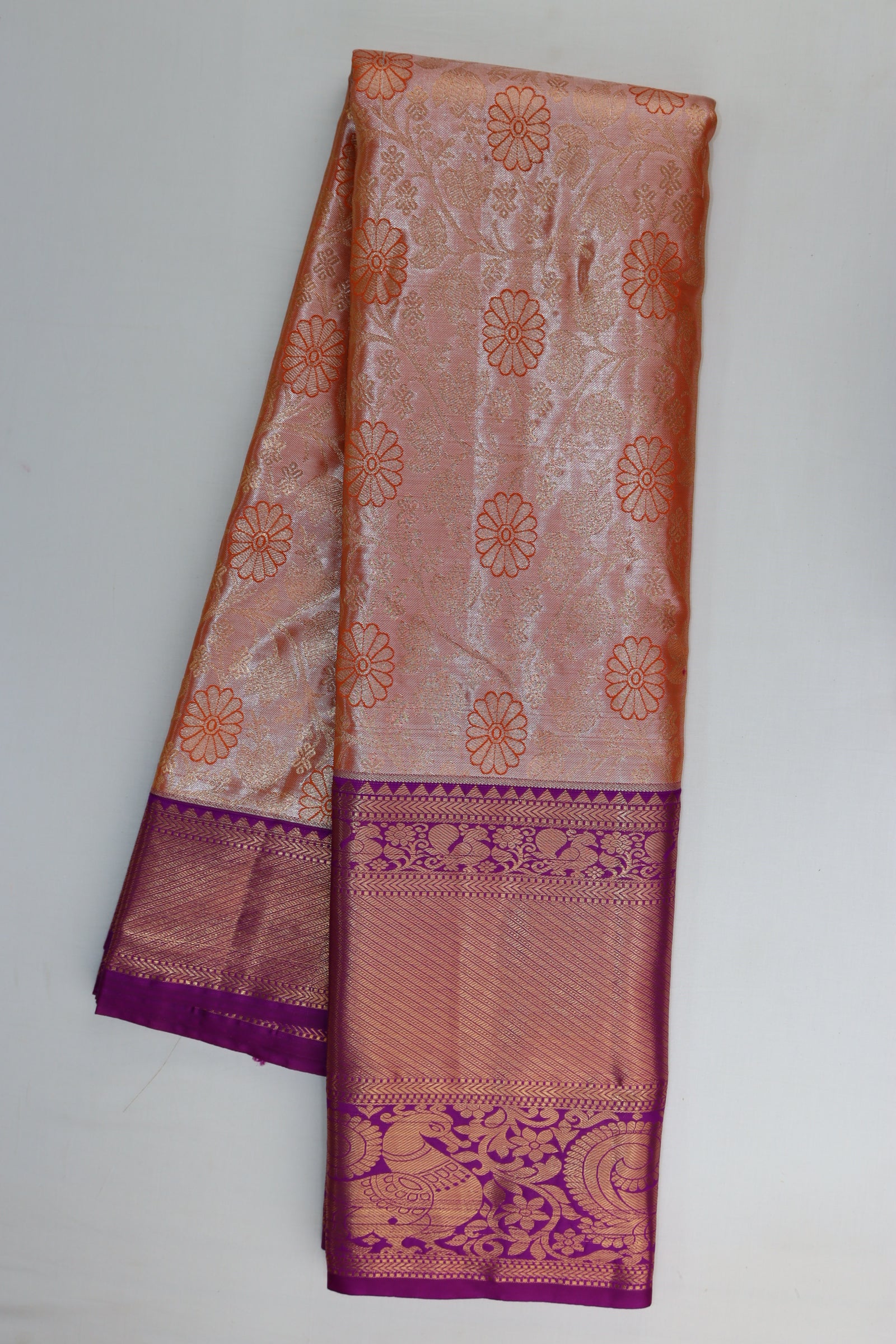 Experience elegance and comfort with the Trendy Peach Kanjipuram Saree. Made with top-quality materials, this lightweight saree is perfect for any occasion. Its vibrant parrot green color adds a touch of sophistication, and the convenient blouse completes the look. Elevate your style with this versatile and luxurious saree.